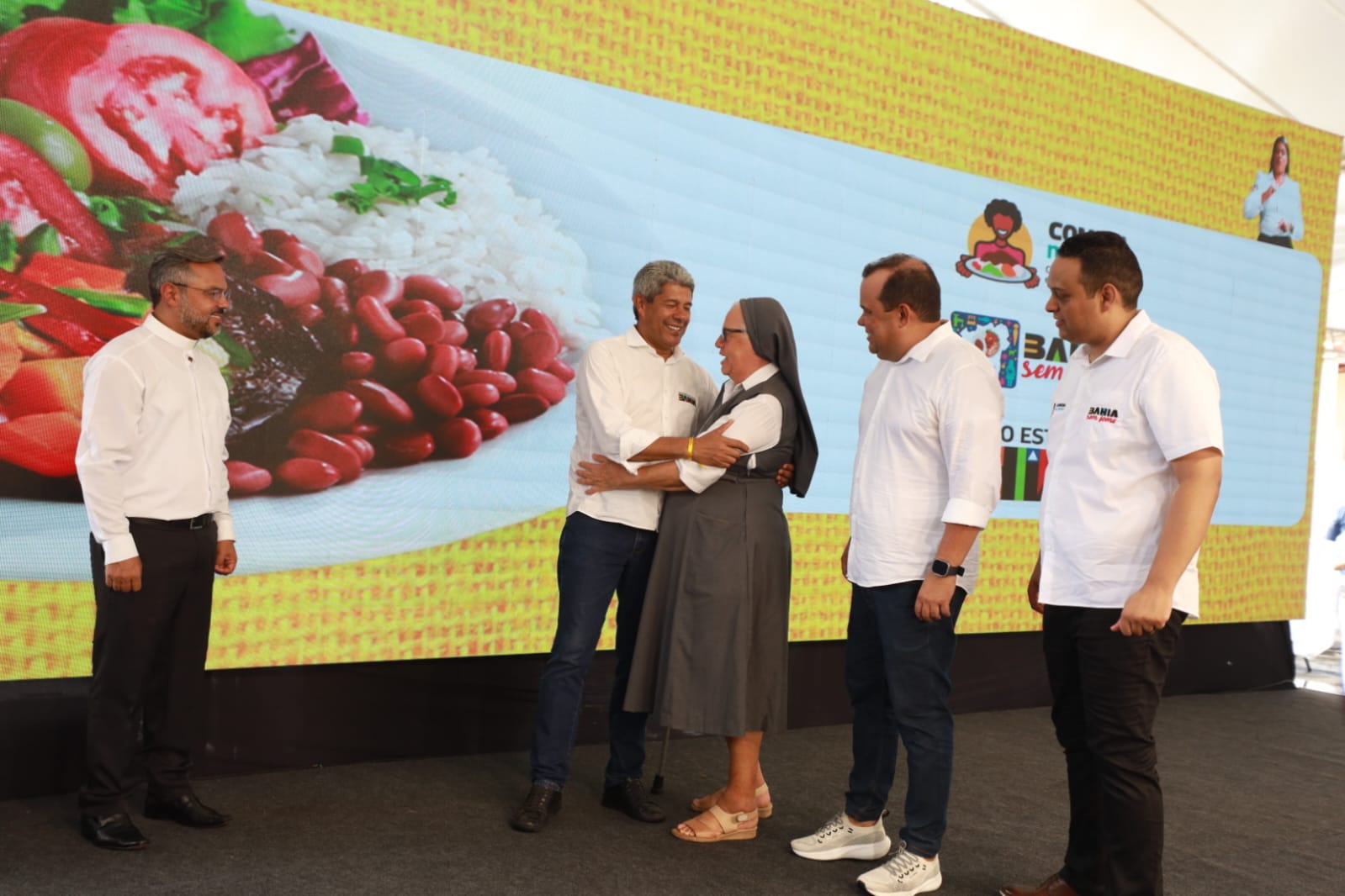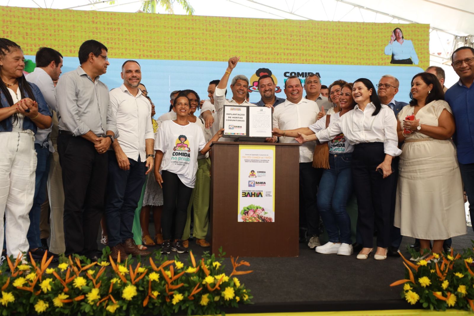 No evento estiveram presentes o vice-governador Geraldo Júnior, o coordenador do Programa Bahia Sem Fome, Tiago Pereira, as secretárias de Assistência e Desenvolvimento Social (Seades), Fabya Reis, do Desenvolvimento Urbano (Sedur), Jusmari Oliveira, além do secretário Osni Cardoso, do Desenvolvimento Rural (SDR) e o procurador Geral do Estado, Pedro Maia.