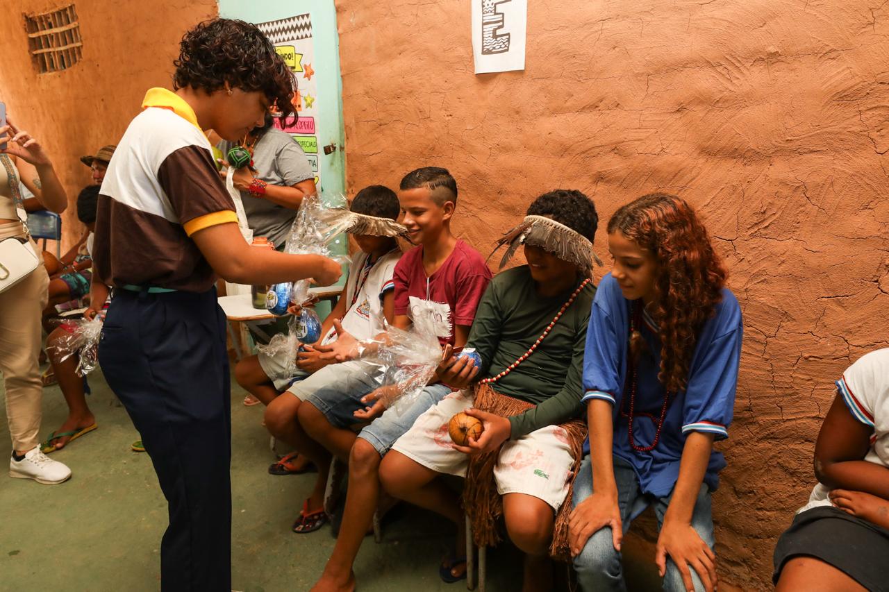 A Secretaria da Educação do Estado (SEC), em parceria com a Fundação Pedro Calmon (FPC), realizou, nesta segunda-feira (1º), a entrega de obras literárias para ampliar os acervos dos colégios estaduais do Campo Jorge Calmon e Indígena Tupinambá de Amotara, localizados em Ilhéus. Os estudantes indígenas também receberam ovos de Páscoa produzidos na Fábrica Escola do Centro Estadual de Educação Profissional (Ceep) do Chocolate Nelson Schaun, também no município do Sul baiano.