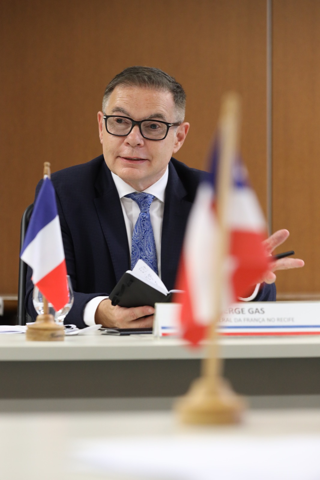Entre os temas abordados estavam a temporada cultural Brasil-França, que será realizada em 2025, a evolução dos projetos de energia renovável, a cooperação com a federação regional de parques naturais, investimentos em turismo e a mudança de titular honorário da França em Salvador. "A relação entre Bahia e a França é bem forte e existe há muitos anos. Agora será fortalecida com novas parcerias e projetos. Estamos muito felizes. Temos muitos investidores franceses aqui na Bahia e a transição energética é um tema muito importante para a França, principalmente o hidrogênio verde. Os grandes eventos culturais e turísticos são outros atrativos para firmação de parcerias promissoras", contou entusiasmado o cônsul Serge Gas.
