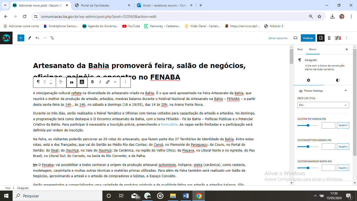 Tema: FENABA: “Fé da Bahia” – Políticas Públicas e o Potencial Criativo da Bahia