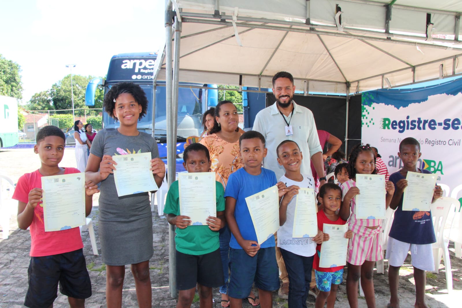 Nesta edição, a iniciativa da Secretaria de Justiça e Direitos Humanos (SJDH) e órgãos parceiros, integra a ‘Semana Nacional do Registro Civil - Registre-se', promovida pelo Conselho Nacional de Justiça (CNJ) e coordenado na Bahia pela Corregedoria Geral do Tribunal de Justiça do Estado – TJBA. Com idade entre quatro e dez anos, os pequeninos chegaram acompanhados das mães, que foram mobilizadas através da Escola Municipal Quilombola Nossa Senhora da Conceição Cacolé. A rede escolar identificou que parte dos alunos não possuía documentos. Uma delas, também teve a oportunidade de, finalmente, ter o nome do pai registrado na Certidão de Nascimento, através do serviço de reconhecimento de paternidade.