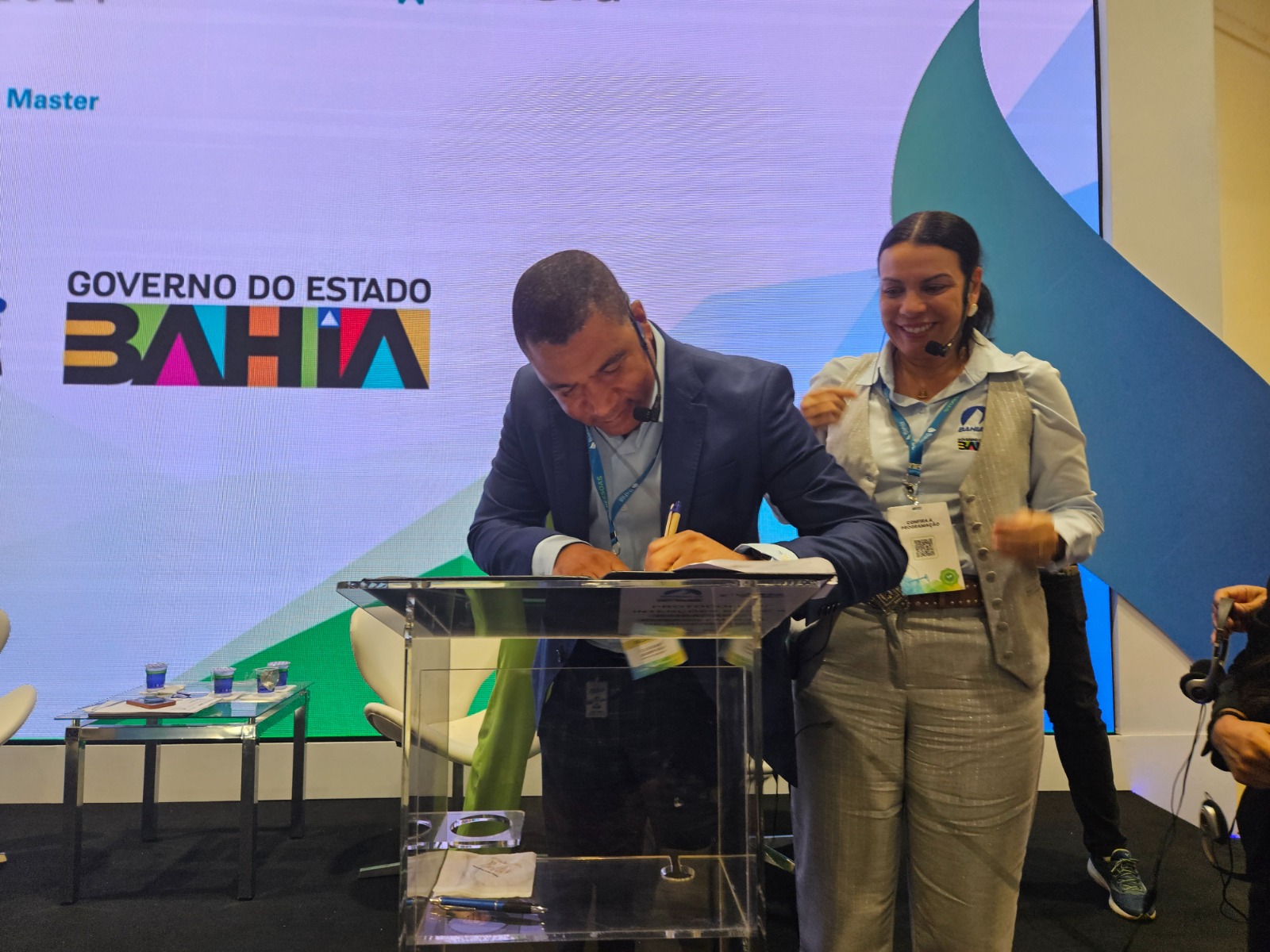 A Embasa e a Bahiagás firmaram protocolo de intenção para investimento em projetos pilotos para a geração de bioenergia por meio de aproveitamento dos resíduos gerados nas estações de tratamento de esgoto. A assinatura ocorreu na quinta-feira (23) ao final da plenária "Transição Energética na Bahia", durante a Feira Bahia Oil & Gas Energy, realizada no Centro de Convenções de Salvador. O documento foi assinado pelos diretores Técnico e de Planejamento da Embasa, Clécio Cruz, e Técnica e Comercial da Bahiagás, Larisse Steliano.