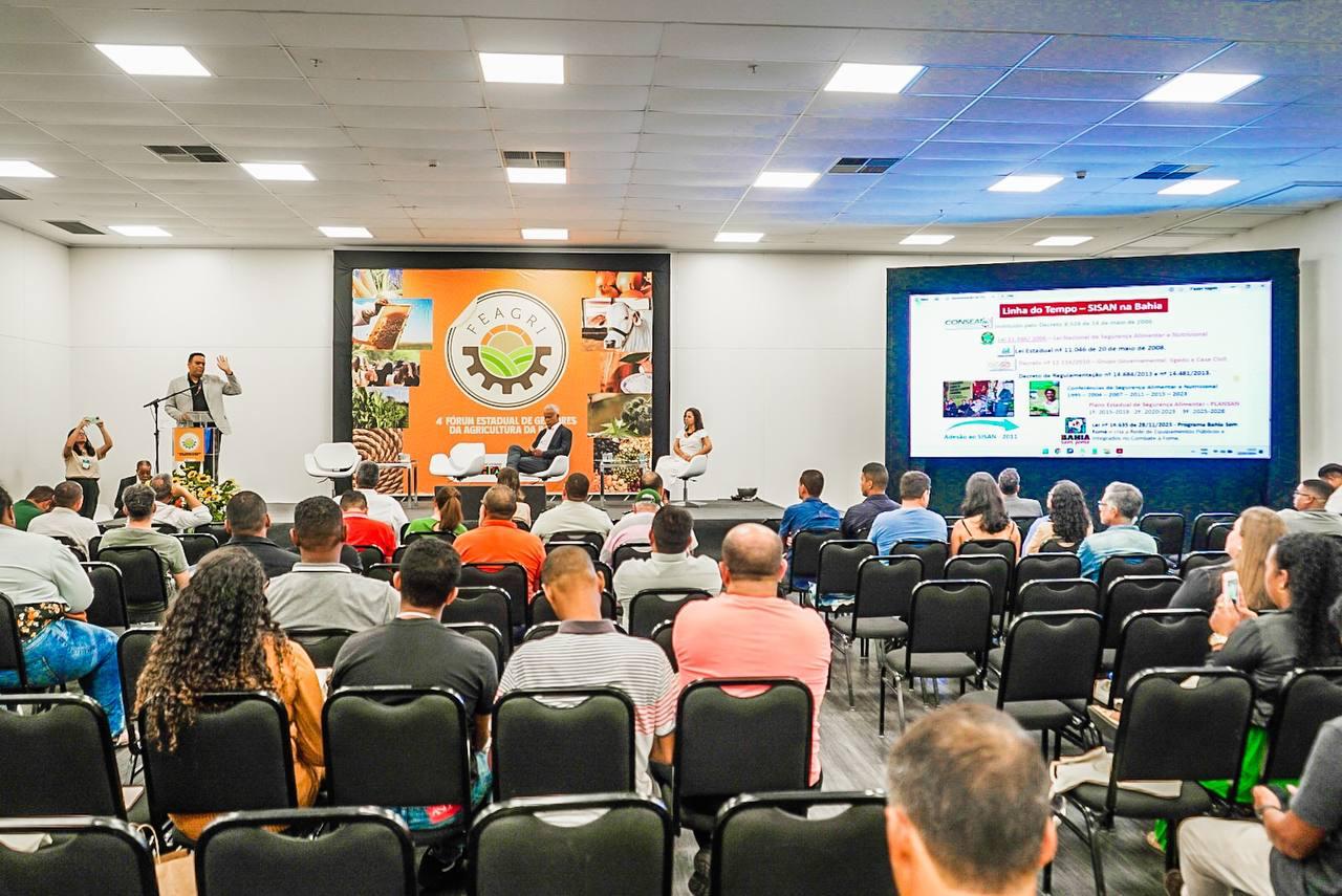 A importância da cooperação e da inovação no campo foi um dos temas debatidos no 4º Fórum Estadual de Gestores da Agricultura, Pecuária, Irrigação, Pesca e Aquicultura da Bahia (Feagri), que acontece até esta quinta-feira (23), no Centro de Convenções de Salvador. Na ocasião, o coordenador-geral de Ações Estratégicas de Combate à Fome, Tiago Pereira, apresentou um balanço do Bahia Sem Fome, programa prioritário do Governo do Estado.
