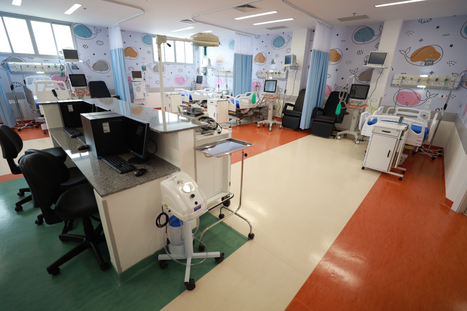 A unidade de saúde teve um investimento de R$ 200 milhões, entre obras, equipamentos e mobiliário, e conta com 216 leitos, sendo 30 de UTI adulto e pediátrica.
