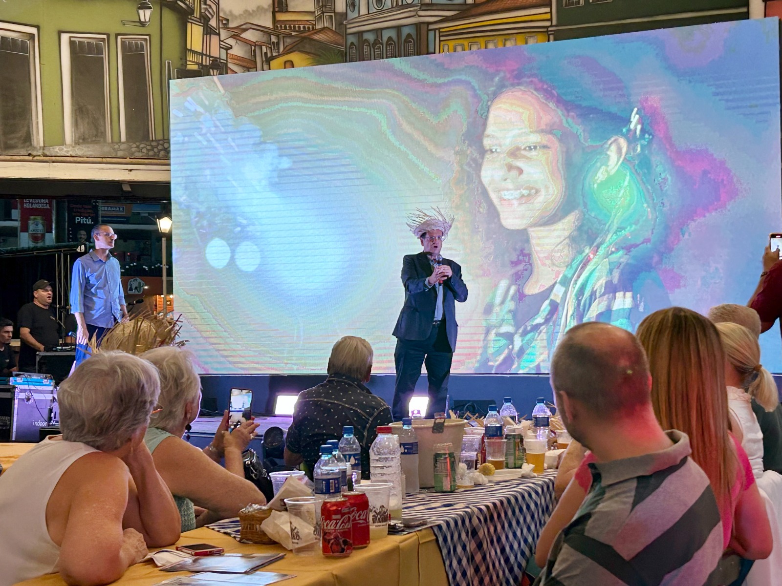 Na abertura dos portões do Lançamento do São João da Bahia, os convidados faziam fila para fotografar com personagens da quadrilha junina.