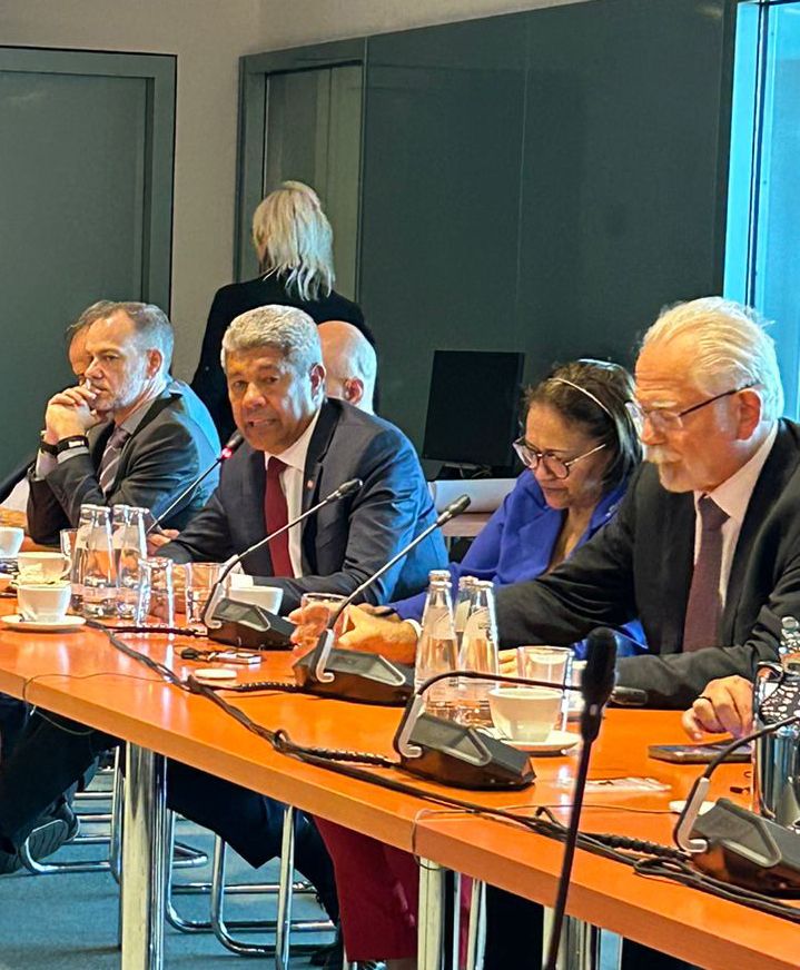 Localizada em Berlim, a Casa da Economia Alemã, sede de três entidades empresariais do país, recebeu nesta sexta-feira (17), a missão dos governos nordestinos que está em agenda oficial na Europa desde o início da semana. O governador Jerônimo Rodrigues, que lidera a comitiva baiana, se juntou a outros governadores e representantes dos estados para discussões sobre oportunidades de negócios com empresas e entidades que investem ou fazem intermédio de capital alemão fora do país.