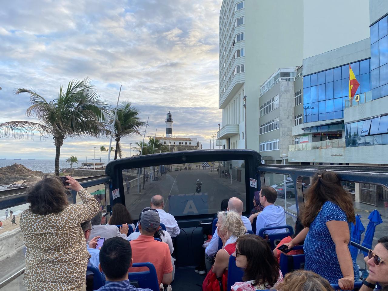 A delegação seguiu em ônibus com vista panorâmica até o Pelourinho, passando pelo Farol da Barra, Avenida Contorno e Elevador Lacerda.