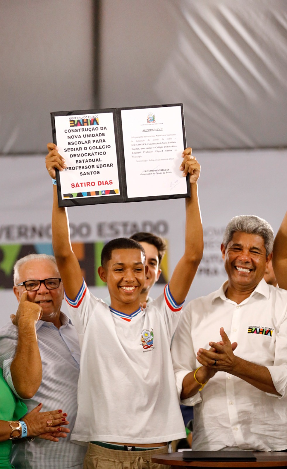 “A van escolar nos proporciona melhor conforto para chegar até a escola. Como por exemplo, esse veículo é bem mais acolchoado, ele tem ar-condicionado, muitos benefícios. Então eu acredito que mais uma van escolar entregue hoje auxiliará muito no desenvolvimento da educação de Sátiro Dias”, declarou o estudante, antes de comemorar uma outra conquista: o anúncio da construção de uma nova sede para a escola onde estuda.