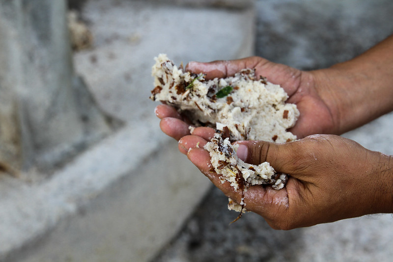 Lordelo explica o processo de produção da fécula de mandioca, em que a raiz é processada para extrair o leite (fécula), resultando na separação da fibra e da água vegetal. “A casca é destinada à ração animal, enquanto a água produzida na extração do amido é utilizada para gerar gás metano, empregado na secagem da fécula. O resíduo é decomposto por bactérias metanogênicas para produzir mais metano, usado como fonte de calor. Por fim, a água residual torna-se um biofertilizante aplicado na área do maniveiro para implantação de novas áreas de produção de mandioca”.