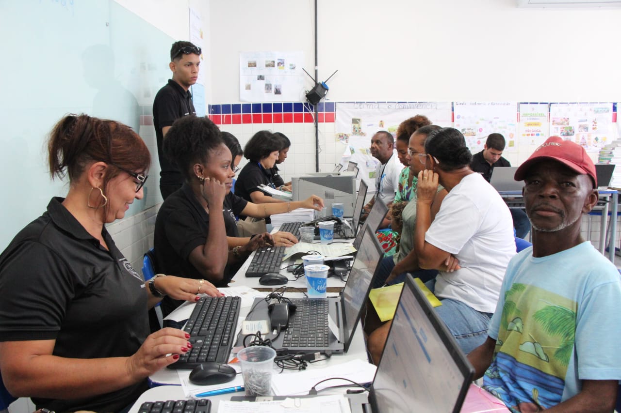 A chuva que molhou, à noite, o barro marrom-avermelhado característico do solo sertanejo de Antônio Cardoso, deu trégua na manhã desta quinta-feira (6) e trouxe um clima ameno à cidade, permitindo que centenas de cardosenses pudessem chegar tranquilamente ao Colégio Estadual do Campo Genivaldo Almeida Brandão para emitir a 2ª via do seu RG, receber orientações da Empresa Baiana de Águas e Saneamento (Embasa) e acessar os diversos serviços, gratuitos, de cidadania ofertados pela Secretaria de Justiça e Direitos Humanos (SJDH) e seus parceiros.