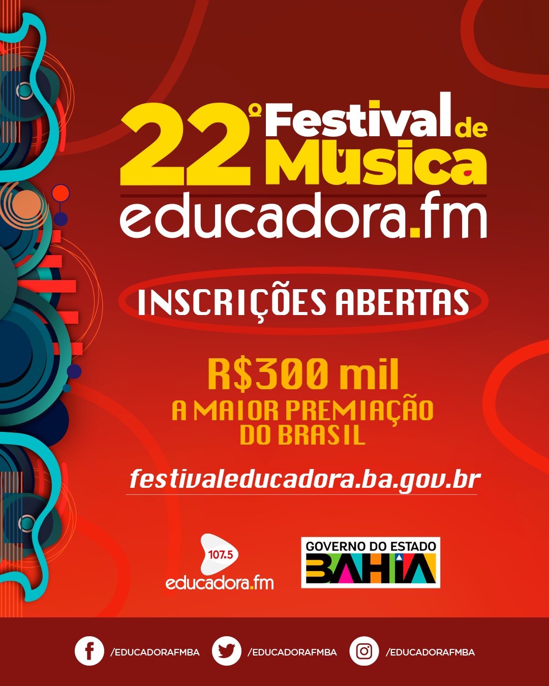 A rádio pública da Bahia anuncia o 22° Festival de Música Educadora FM com a maior premiação do Brasil, distribuindo R$ 300 mil.