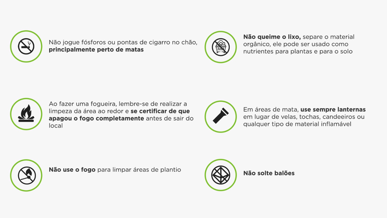 “Fagulhas podem atingir áreas de vegetação seca, iniciando focos de incêndio que podem se espalhar rapidamente, causando danos irreparáveis à flora e fauna local. Então, a orientação é respeitar as áreas naturais e manter os fogos de artifício longe desses locais”.