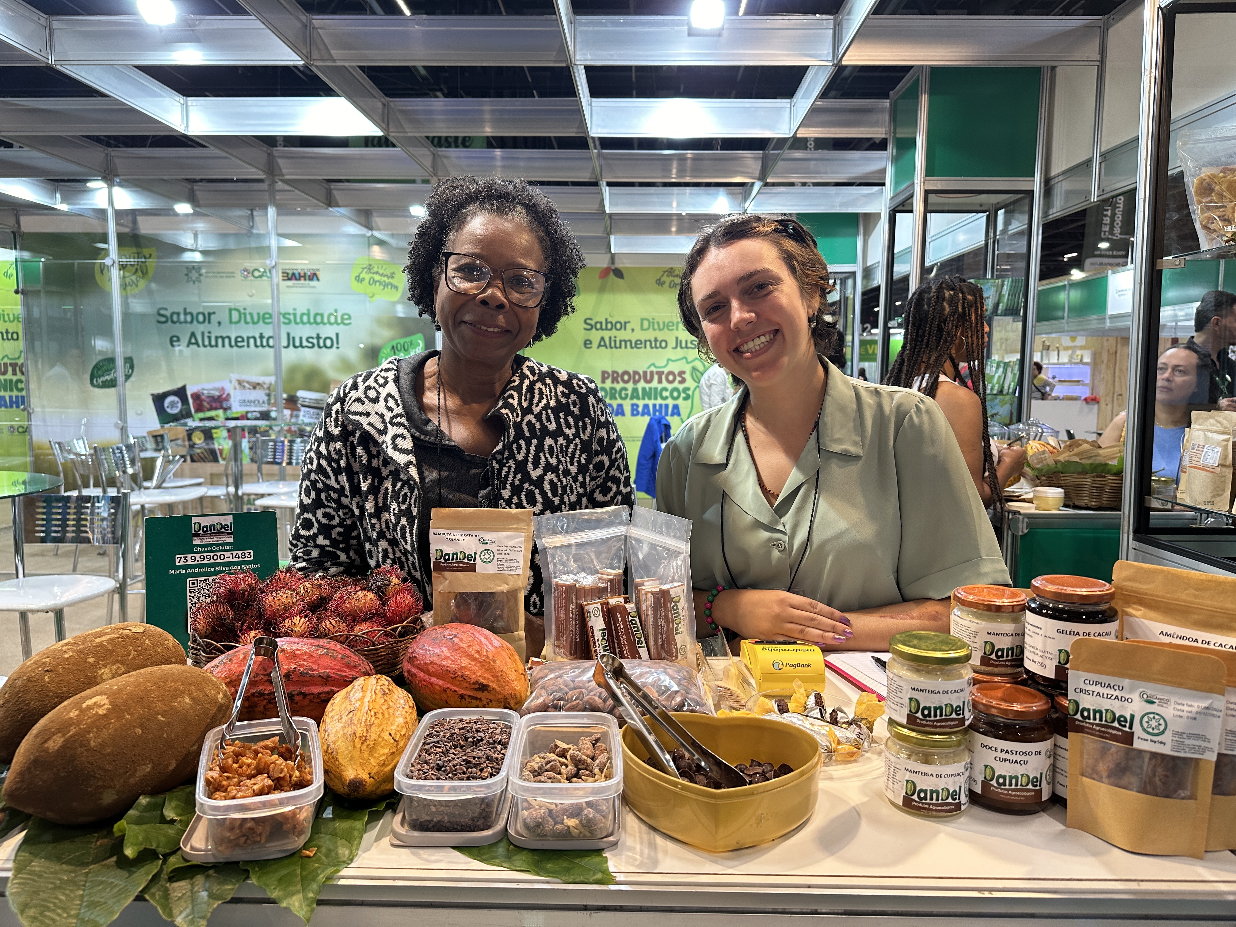 Maria Andrelice, do Assentamento Dandara dos Palmares, faz parte da rede Povos da Mata e compartilhou a sua satisfação em estar no evento. "Estamos aqui mostrando e compartilhando nossos produtos da Bahia, tanto in natura quanto agroindustrializados, especialmente os derivados do cacau. É uma oportunidade incrível para mostrar a riqueza do nosso trabalho".
