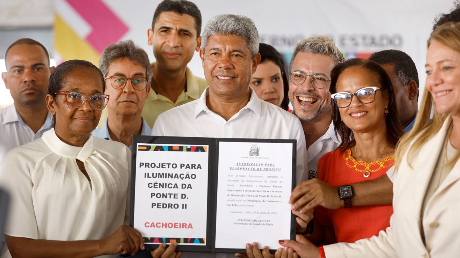 “Autorizamos a implantação do sistema de água para comunidades diversas, também está autorizada a elaboração do projeto da iluminação cênica dessa ponte maravilhosa: Cachoeira - São Félix, e assinei ordem de serviço para que a Conder elabore os projetos de imediato para a construção de encostas, além de pavimentação de estradas para zona rural, serão mais 24 quilômetros de asfalto”, enumerou o governador, lembrando que retorna à Cachoeira pela segunda vez esta semana, depois de participar do ato cívico que é parte dos festejos pela Independência da Bahia, na última terça-feira (25).