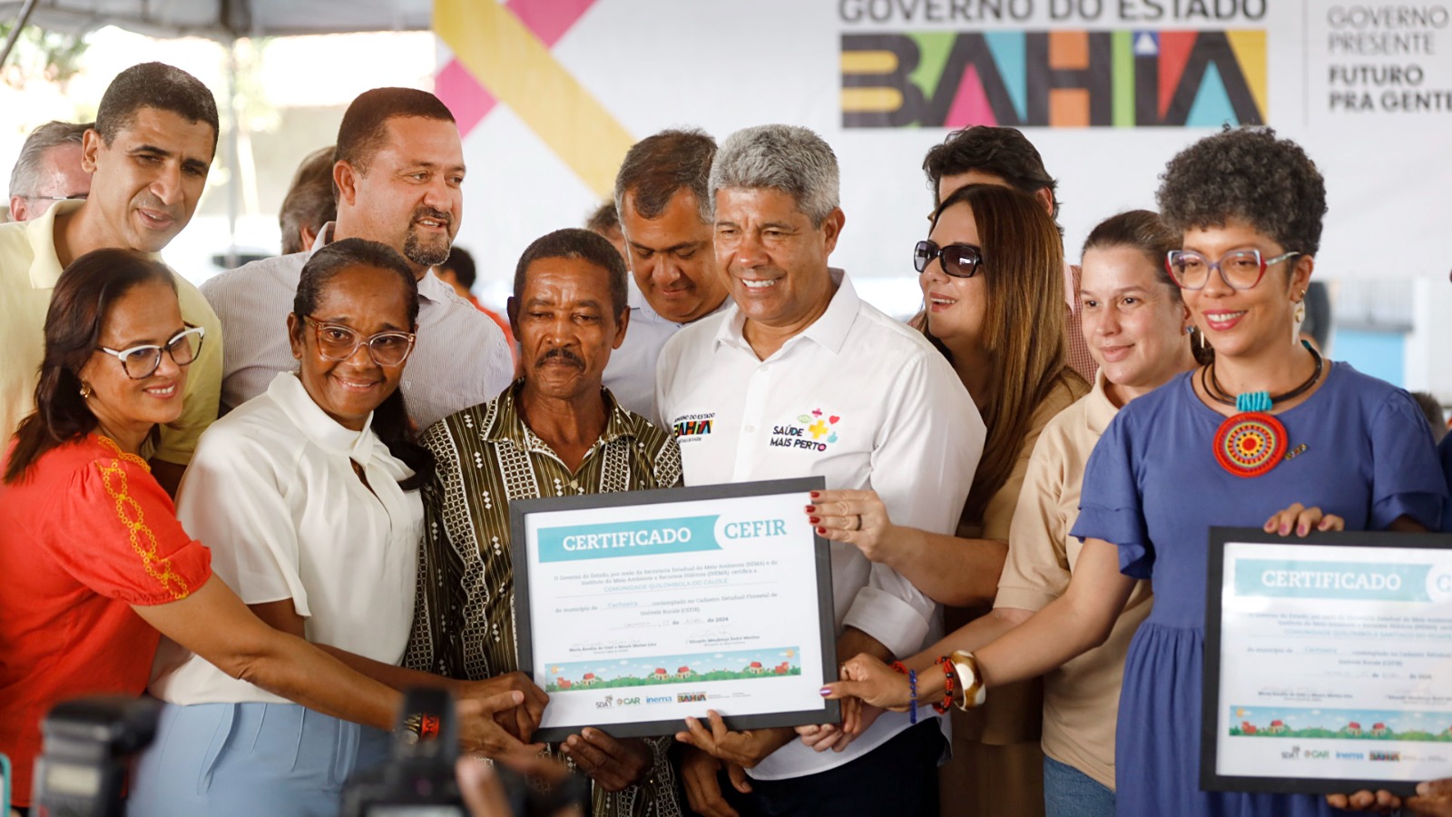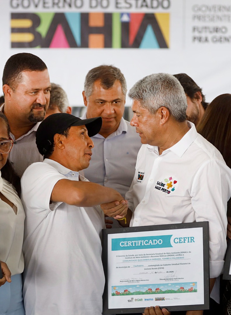 Como forma de assegurar a regularização ambiental, 1.142 famílias de seis comunidades remanescentes de quilombo receberam os certificados do Cefir/Quilombola. A iniciativa é promovida pelo Governo do Estado, por meio da parceria entre a Companhia de Desenvolvimento e Ação Regional (CAR), a Superintendência de Desenvolvimento Agrário (SDA) e o Instituto do Meio Ambiente e Recursos Hídricos (Inema). O ato atendeu moradores das comunidades de Catolé de Baixo e de Cima, Engenho Novo, Engenho da Cruz, São Francisco do Paraguaçu, Santiago do Iguape e Imbiara / Tombo, com aplicação de recursos da ordem de R$150 mil.