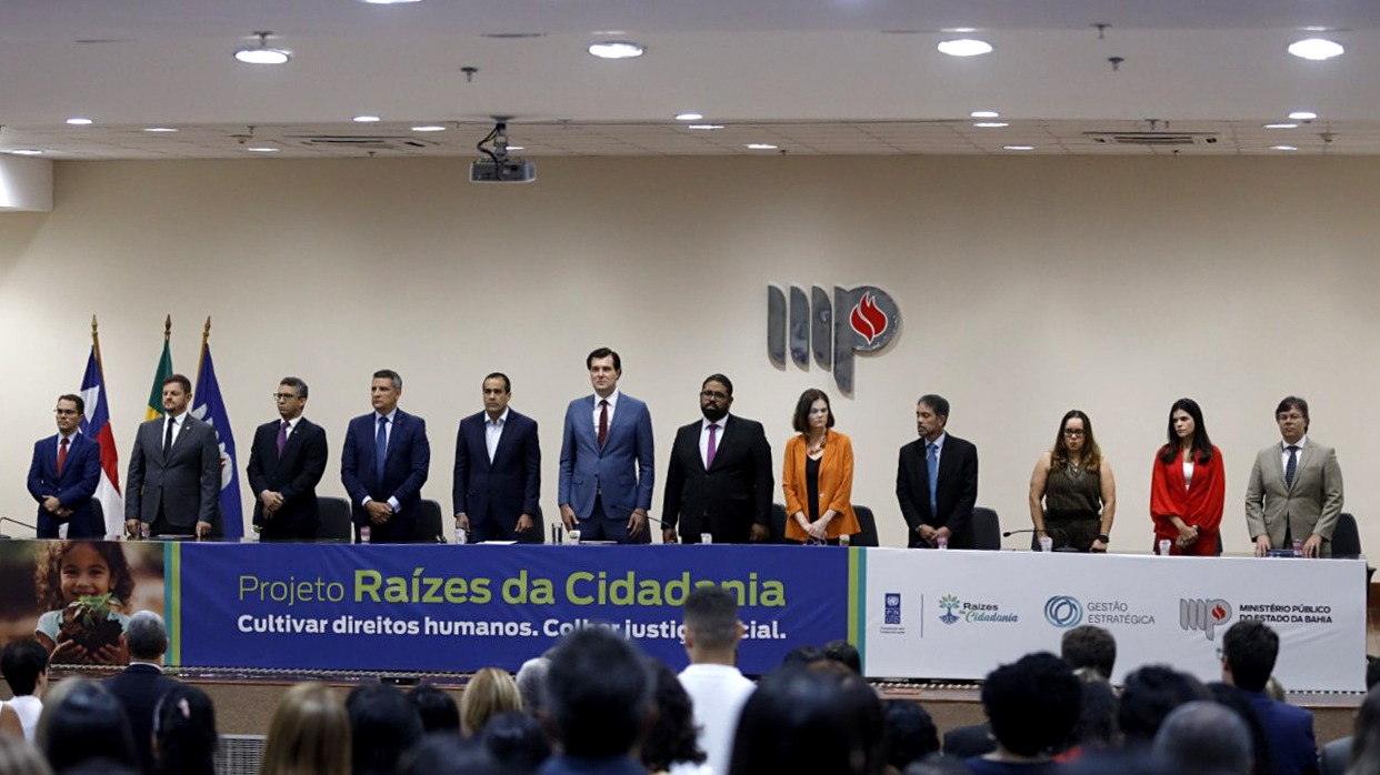 Para marcar o lançamento do projeto ‘Raízes da Cidadania’, o Ministério Público estadual (MP-BA) e o Programa das Nações Unidas para o Desenvolvimento (Pnud) assinaram, na tarde desta quinta-feira (13), no auditório do MP-BA, localizado no Centro Administrativo da Bahia (CAB), um memorando com a intenção de elevar o Índice de Desenvolvimento Humano (IDH) em municípios baianos. O secretário de Direitos Humanos (SJDH), Felipe Freitas, participou do ato, representando o governador Jerônimo Rodrigues.
