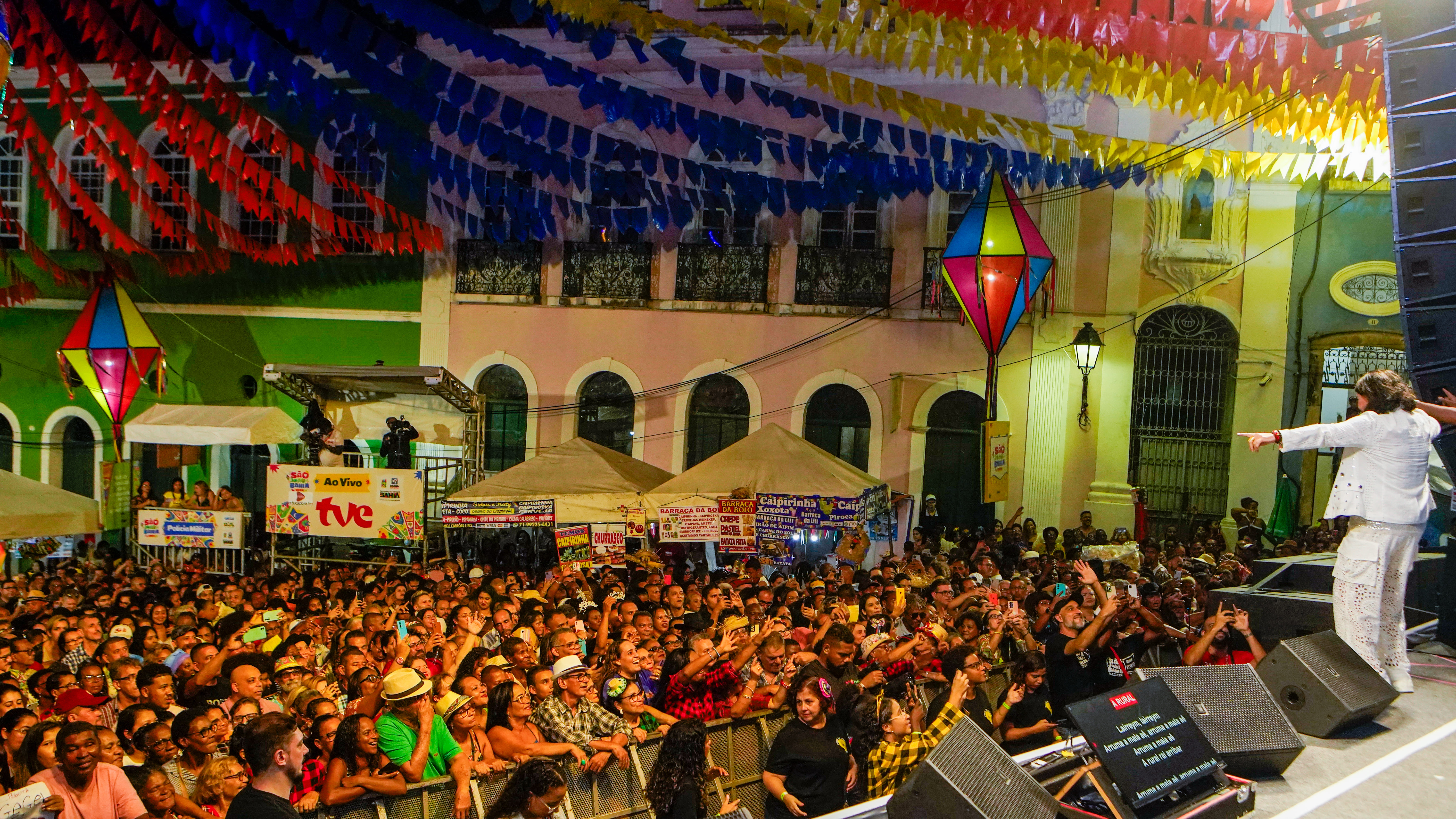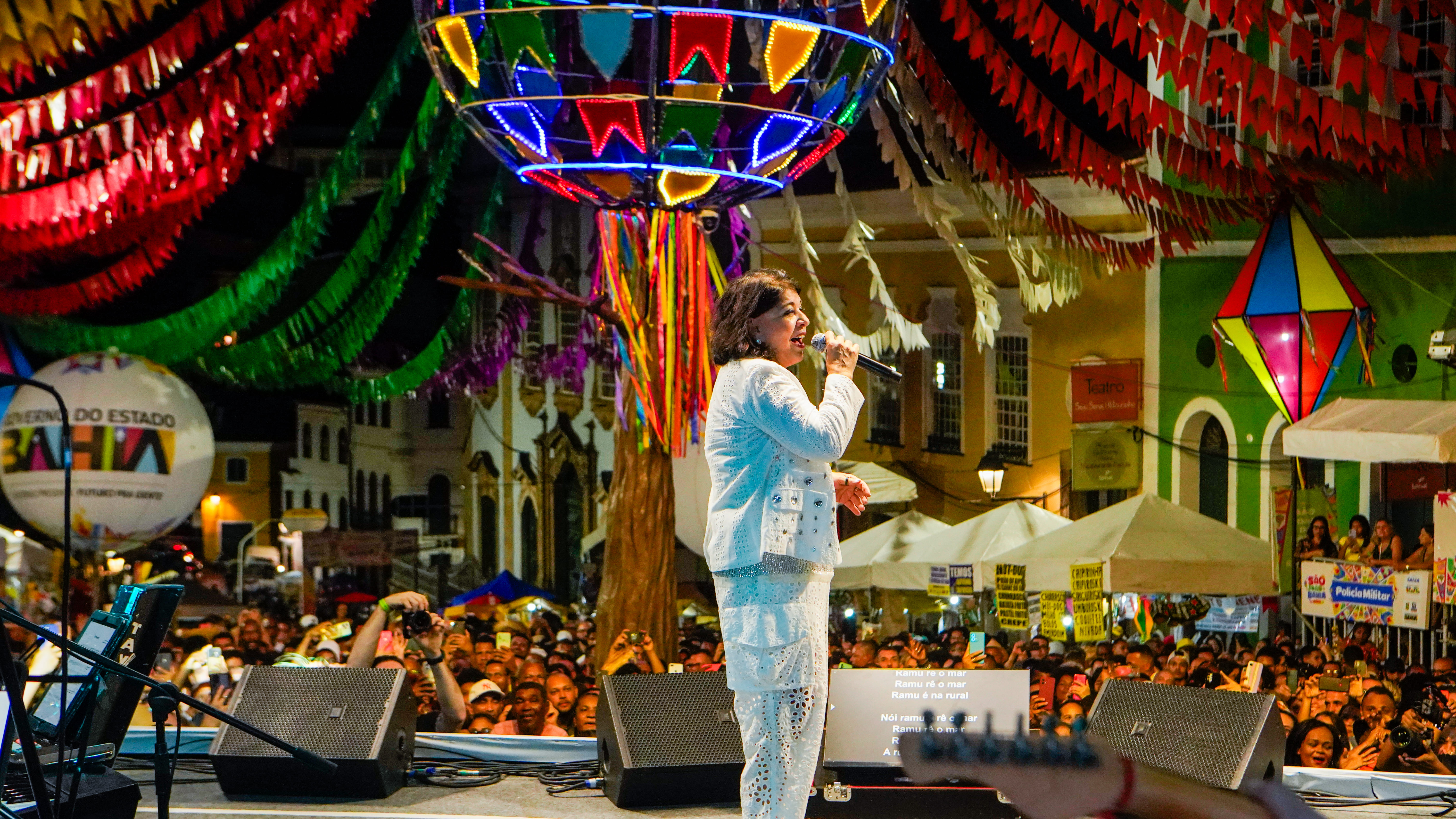 O público cantou os hits em um grande coro que tomou conta de cada canto do Largo do Pelourinho. A paraibana falou sobre o grande prazer que sente em cantar em um local que inspira tanta história e cultura: “quando você fala do Pelourinho, você fala de algo que o mundo inteiro conhece. Algo histórico. A Bahia, em si, já é uma grande história, tudo começou aqui…esse povão maravilhoso, que antes mesmo de entrar no palco já me acolheu de uma forma linda. A gente sabe que a Bahia ama Roberta Miranda e eu também amo os baianos”.