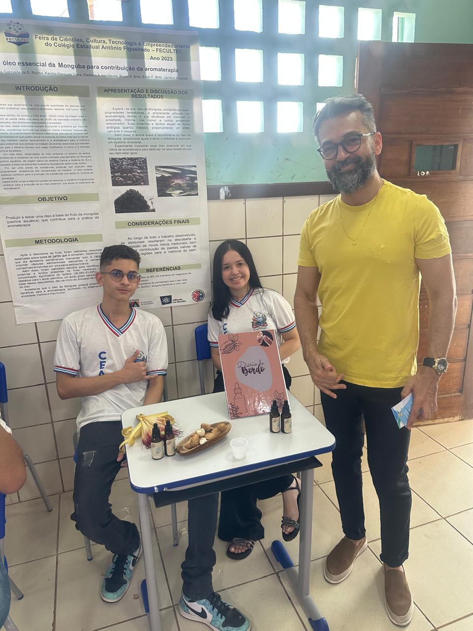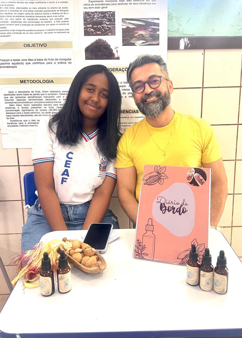Outro finalista é o projeto "Aromas da terra: explorando o potencial terapêutico do óleo essencial do Monguba (pachira aquatica)", desenvolvido pelos estudantes Bruno Souza Brito, 16, e Taynnara Gabryelle da Silva Rocha, 16, sob a orientação do professor Janilton Almeida, do Colégio Estadual Antônio Figueiredo, localizado em Ibiassucê. O projeto explora as propriedades terapêuticas do óleo essencial da Monguba, uma planta nativa, trazendo contribuições significativas para a área de aromoterapia e valorizando a biodiversidade local. "Foi muito gratificante saber que o projeto foi selecionado, até porque ele foi muito elogiado. Minha expectativa para a fase presencial é apresentar o melhor trabalho possível", ressaltou Taynnara.