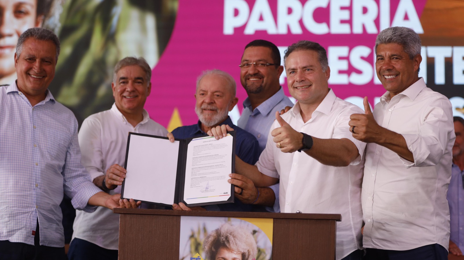 “Nós ficamos seis anos andando para trás. Vendo as políticas públicas sendo destruídas: Minha Casa, Minha Vida, universidade, Água Para Todos, Luz Para Todos, saúde. Então a pressa do povo brasileiro é porque realmente só temos pressa”, considerou o governador Jerônimo Rodrigues sobre as assinaturas e entrega feita.
