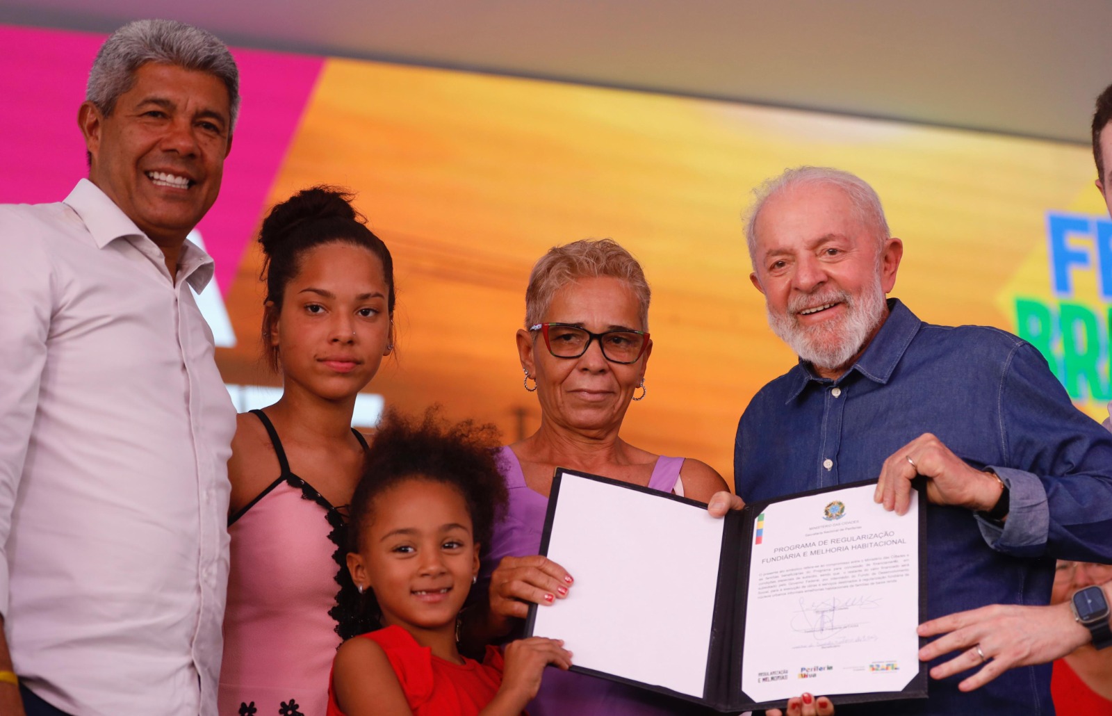 Também foi assinado o contrato do programa Periferia Viva: Regularização Fundiária e Melhoria Habitacional (REGMEL). O objetivo é promover o direito à moradia adequada à população de baixa renda por meio da concessão de financiamento, em condições especiais de subsídio, para a execução de obras e serviços destinados à regularização fundiária de núcleos urbanos informais e melhorias habitacionais. A iniciativa é executada pelo Ministério das Cidades e irá beneficiar 4.853 famílias de 17 cidades baianas. Outras 1.371 também serão contempladas com ações de melhoria habitacional.
