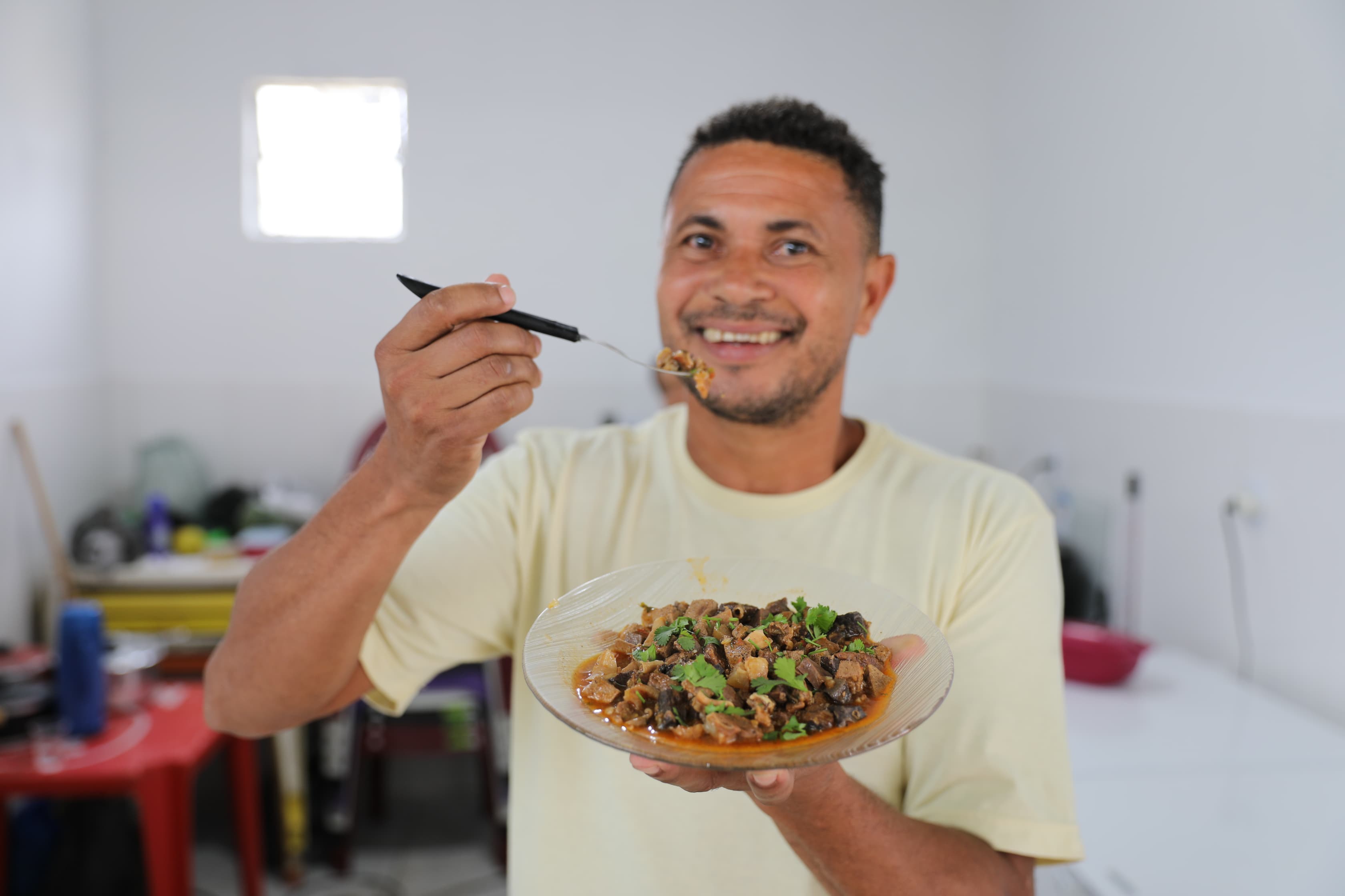 Já o feirante Carlos André de Jesus, do boxe 13, lembra como era antes da reforma. “Era muito difícil porque enfrentávamos sol e chuva para trabalhar. Agora, com esse boxe, tem um espaço adequado para fazer uma comida saborosa para nossa população, inclusive o nosso sarapatel que é tradição há 23 anos, aqui nesse local”.