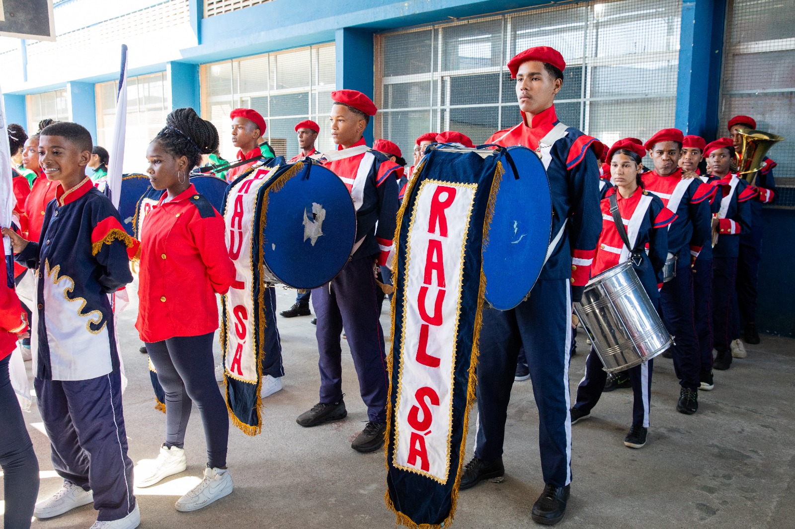 O ritmo e a alegria das bandas e fanfarras de quatro unidades da rede estadual de ensino tomaram conta das ruas do bairro de São Caetano, na manhã desta sexta-feira (19), durante a terceira etapa do Intercolegial de Bandas e Fanfarras. O evento destacou o talento dos jovens músicos e reforçou a importância do investimento contínuo na Educação e na Cultura. A integração entre escola, família e comunidade foi fortalecida com a programação realizada nas dependências do Colégio Estadual Desembargador Pedro Ribeiro, unidade escolar anfitriã do dia, que promoveu rodas de conversas e reflexões sobre tolerância, dignidade menstrual, masculinidade tóxica e estímulo à cultura da paz.