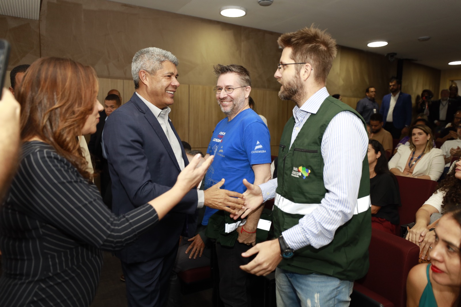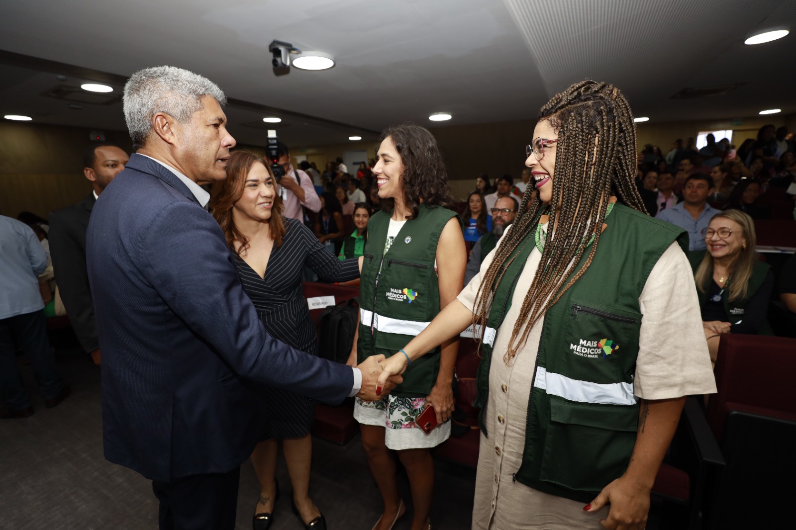 Médicos baianos que atuam no ‘Mais Médicos’, do Ministério da Saúde (MS), foram recebidos, na manhã desta quarta-feira (17), pelo governador Jerônimo Rodrigues e pela secretária da Saúde do Estado, Roberta Santana, para a abertura do Módulo de Acolhimento e Avaliação do programa. Realizado no auditório da Sesab, no CAB, o evento contou com painéis e palestras, e anúncio de novidades e vagas previstas no novo edital.
