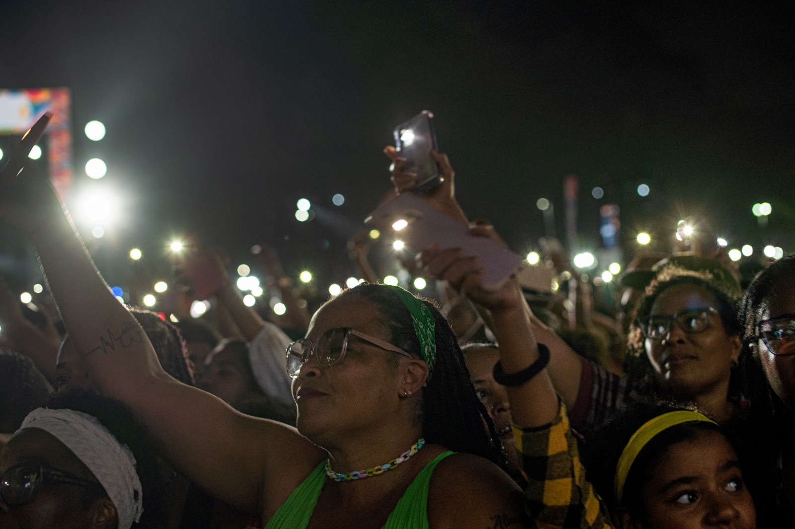 O show da cantora e compositora Manu Bahtidão começou por volta das 19h e atraiu muitos fãs, que lotaram o palco principal da festa. No repertório, músicas como ‘Daqui para sempre’, ‘Se não for tu’ e ‘Quem perde é quem trai’. A artista tem embalado o público ao som do tecnomelody e já acumula mais de 90 milhões de visualizações com o clipe de ‘Torre Eiffel’.