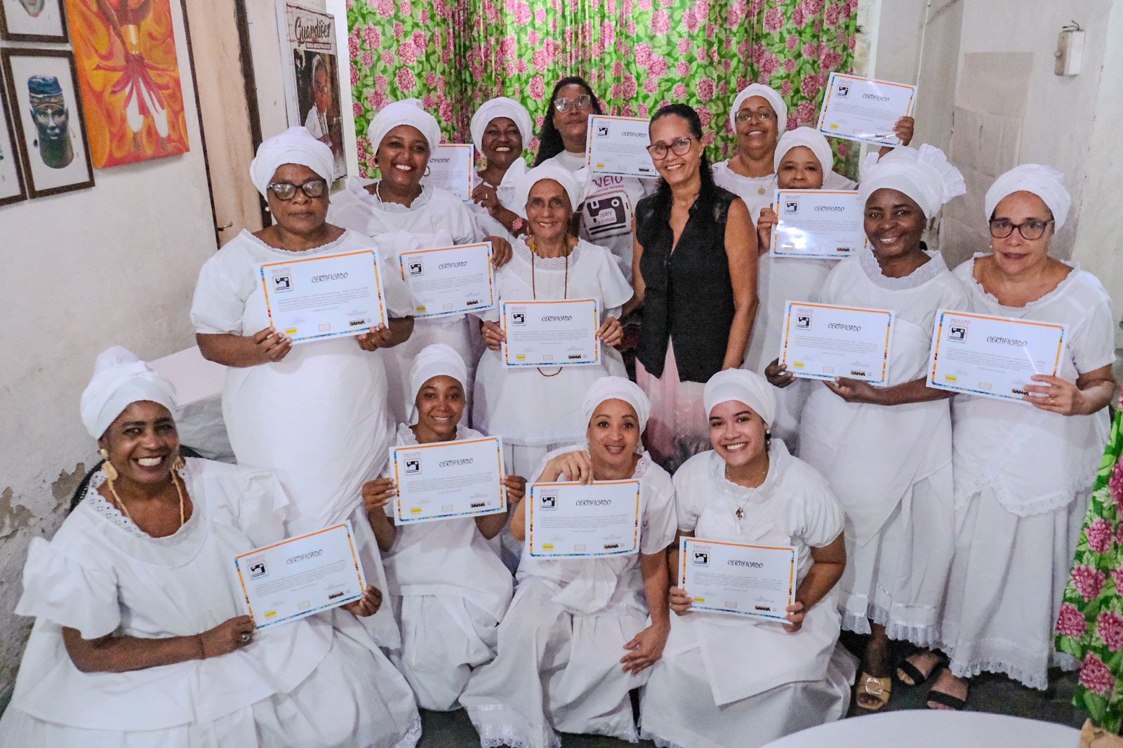 A comunidade do Ilê Axé Iyá Nassô Oká celebrou a certificação de 20 mulheres que concluíram o curso de capacitação em corte e costura.