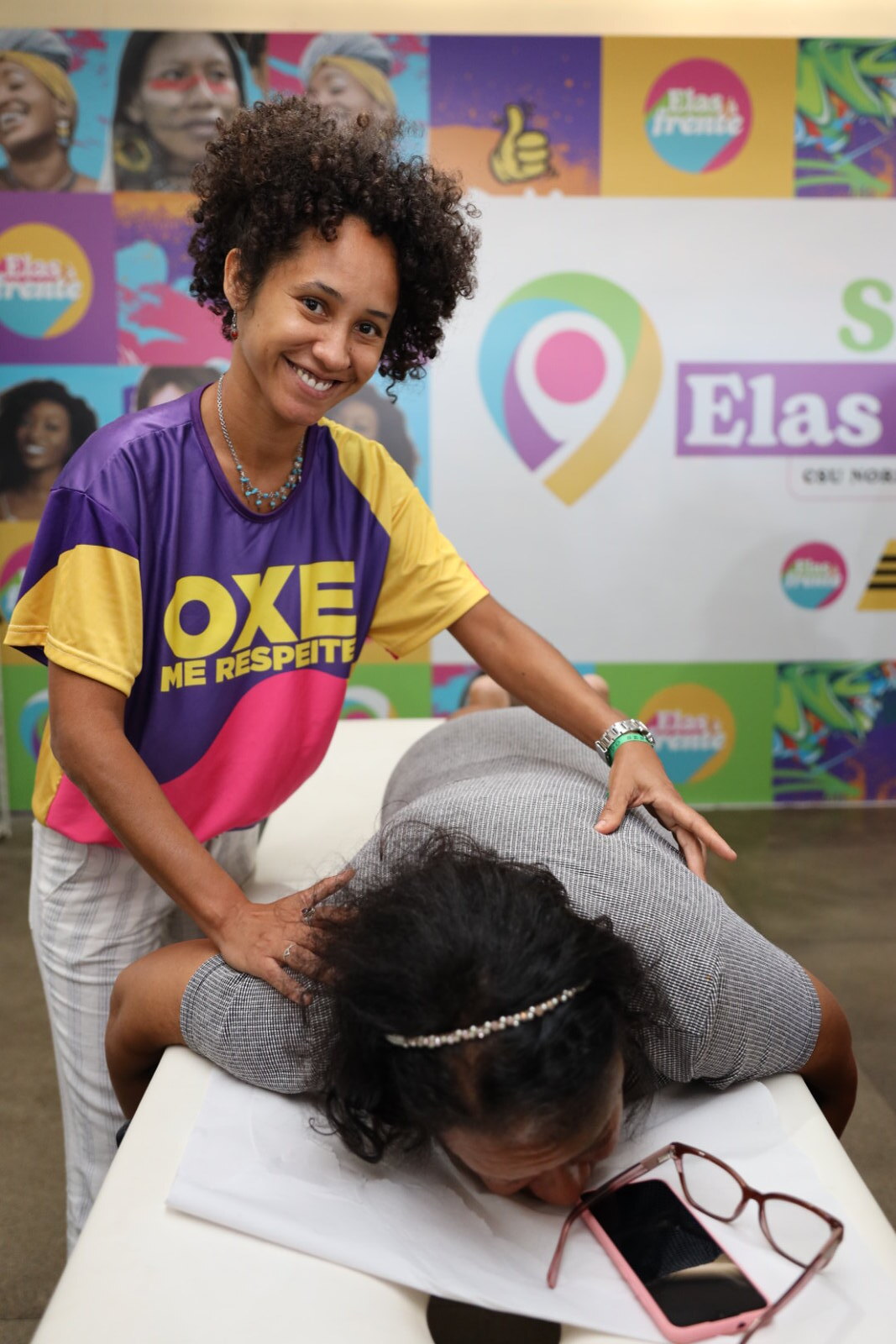A aposentada Maria de Jesus é moradora do bairro há 23 anos e falou do atendimento que recebeu na Sala Elas à Frente. “Eu estava sentindo dores na coluna e fui recepcionada nesta sala. Ganhei uma massagem e estou me sentindo bem melhor. Sabendo agora que temos esse espaço, sempre vou estar por aqui me cuidando”, comentou.
