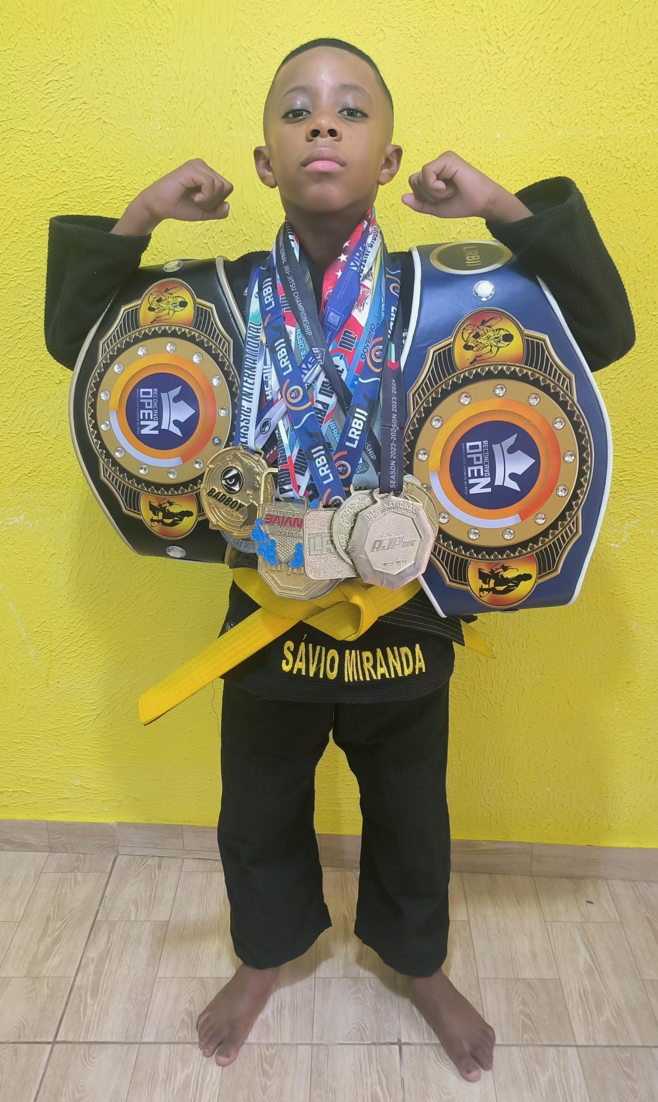 Há quase dois anos competindo e com 26 medalhas ao todo, o jovem lutador Sávio Miranda, de nove anos, já está de olho no Campeonato Vitória Kids Internacional de Jiu-Jitsu 2024, que acontece neste domingo, 04, em Vitória, no Espírito Santo. Acompanhado do pai, Luís Alberto Miranda, ele viaja neste sábado (3) com passagens aéreas concedidas pela Superintendência dos Desportos do Estado da Bahia (Sudesb), autarquia vinculada à Secretaria do Trabalho, Emprego, Renda e Esporte (Setre).