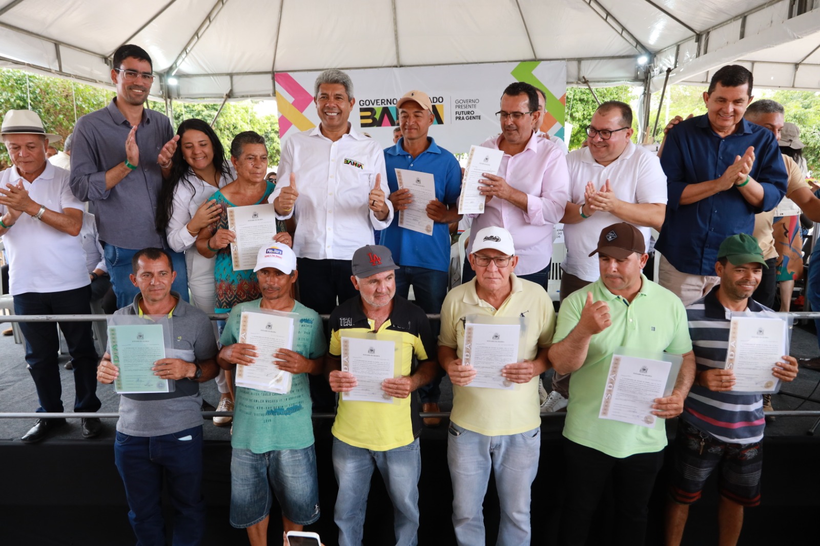Por fim, 15 títulos de terra do projeto Bahia Mais Forte Terra Legal foram entregues a agricultores familiares, povos e comunidades tradicionais de Ibipeba. O investimento de R$ 22,5 mil garante a regularização fundiária de diversas propriedades na região.