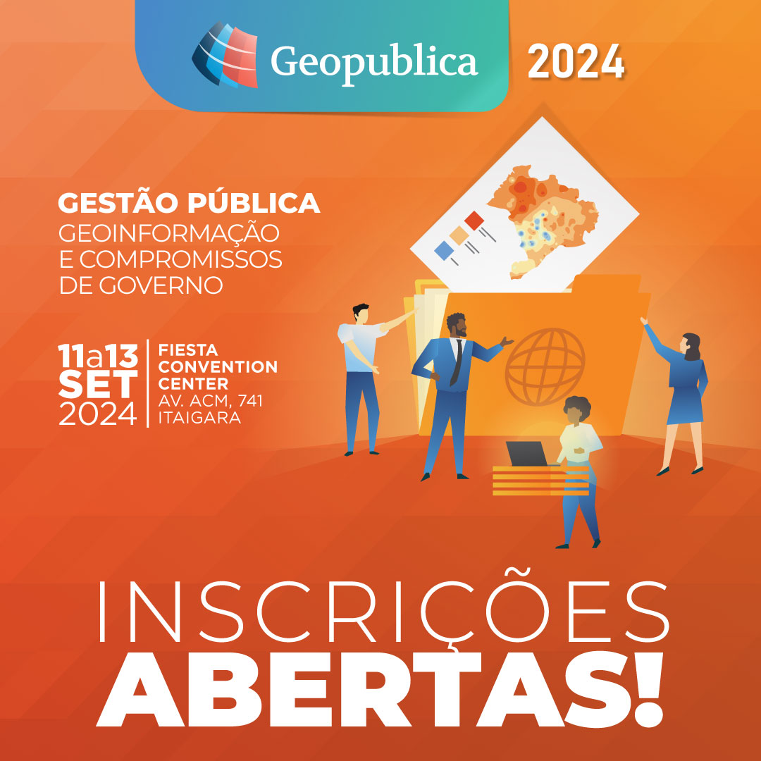 Estão abertas as inscrições para o Geopublica 2024, evento que abordará o tema "Gestão pública: geoinformação e compromissos de governo".