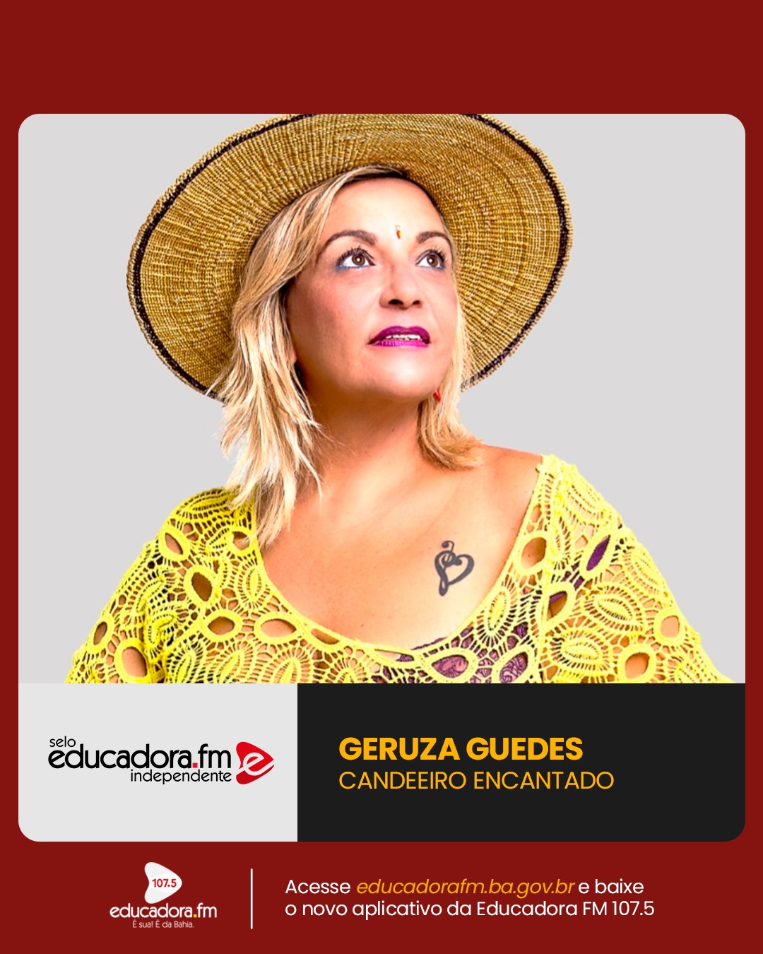 O Selo Educadora Independente promove ‘Candeeiro Encantado’, o primeiro álbum solo da cantora e compositora Geruza Guedes, de Feira de Santana. A iniciativa divulga lançamentos de álbuns e EPs através da Rádio Educadora FM, da TVE e das redes sociais das emissoras públicas.