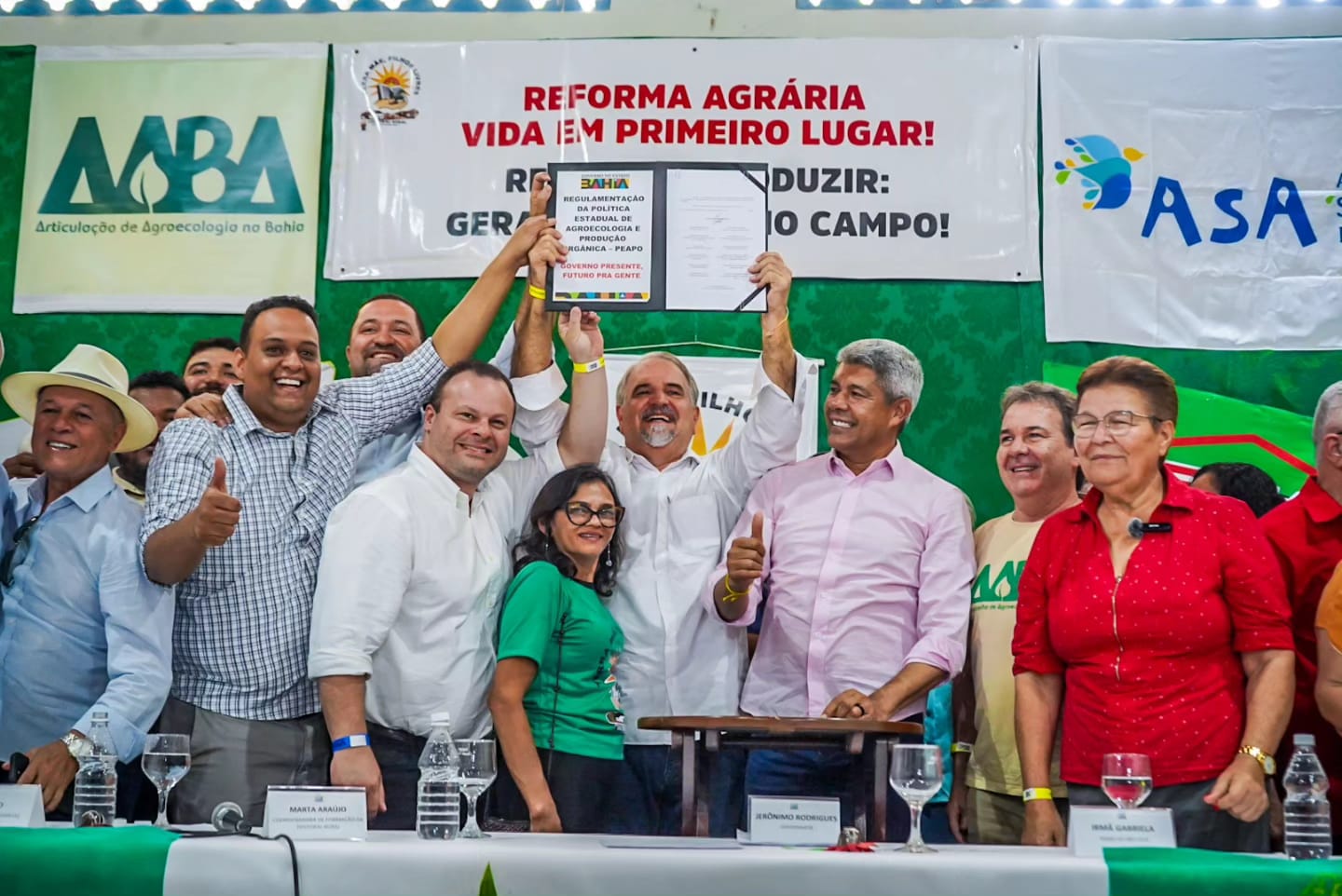 Neste sábado (24), o Governo da Bahia regulamentou a Lei da Agroecologia e Produção Orgânica, nº 14.564 de 16/05/2023, um marco importante para a agricultura familiar e para o combate à fome. O governador Jerônimo Rodrigues assinou o decreto que estabelece a constituição da Comissão Interinstitucional de Agroecologia e Produção Orgânica (CIAPO) e a Comissão Estadual de Agroecologia e Produção Orgânica (CEAPO), com a participação da sociedade civil, do governo e das universidades. A assinatura aconteceu durante uma plenária com movimentos sociais e organizações populares na cidade de Cícero Dantas.