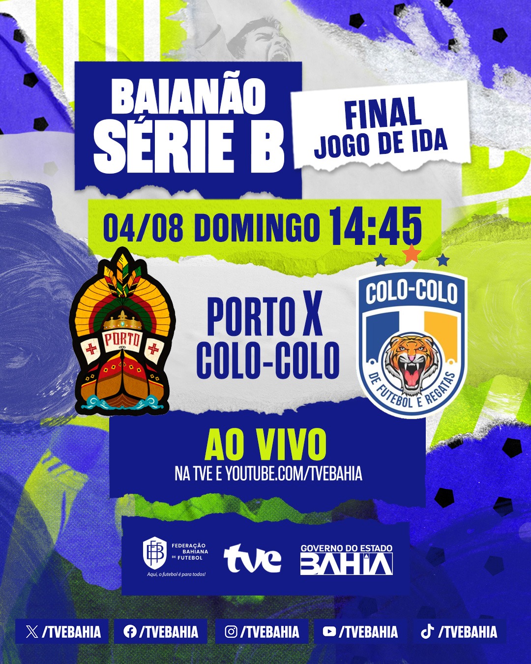 Os clubes sul-baianos Porto, de Porto Seguro, e Colo Colo, de Ilhéus, chegam à final da Série B do Campeonato Baiano já com as vagas garantidas na elite do futebol estadual no próximo ano. O jogo de ida pela decisão do título acontece neste domingo (4), a partir das 14h45 (pré-jogo), com transmissão ao vivo pela TVE direto do estádio Agnaldo Bento, em Porto Seguro. Os torcedores também podem acompanhar pelo youtube.com/tvebahia.