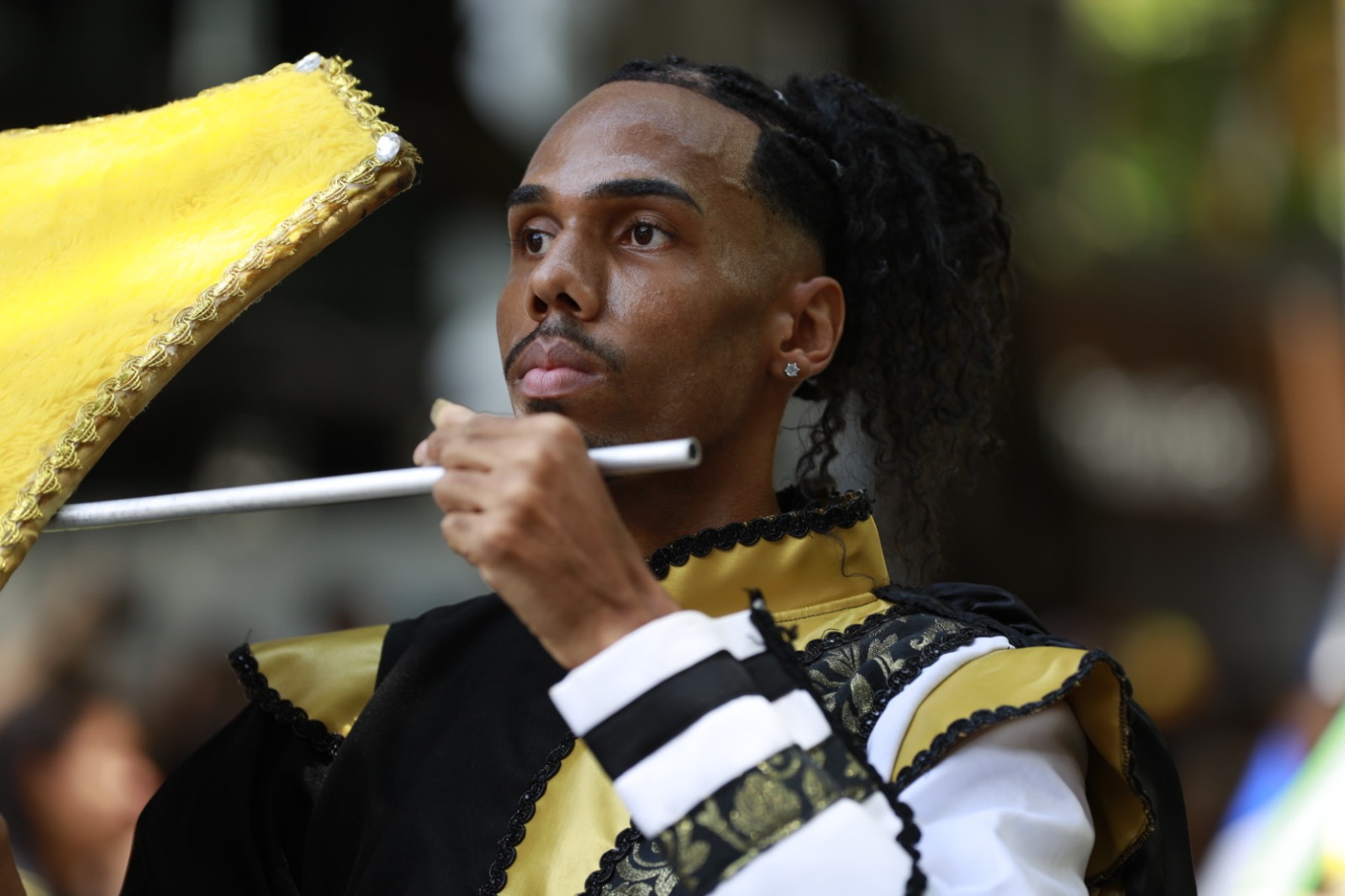 Representando a Bamasi, do Colégio Estadual Américo Simas, em Lauro de Freitas, Marcos Vinícius Santos, 23, atua há dois anos como porta cartel, função que identifica a categoria da corporação musical e é o destaque da fanfarra. “É um sentimento de amor, de paixão, a gente faz porque gosta. E acabamos vivendo a cultura do Brasil, que é muito importante”, disse.