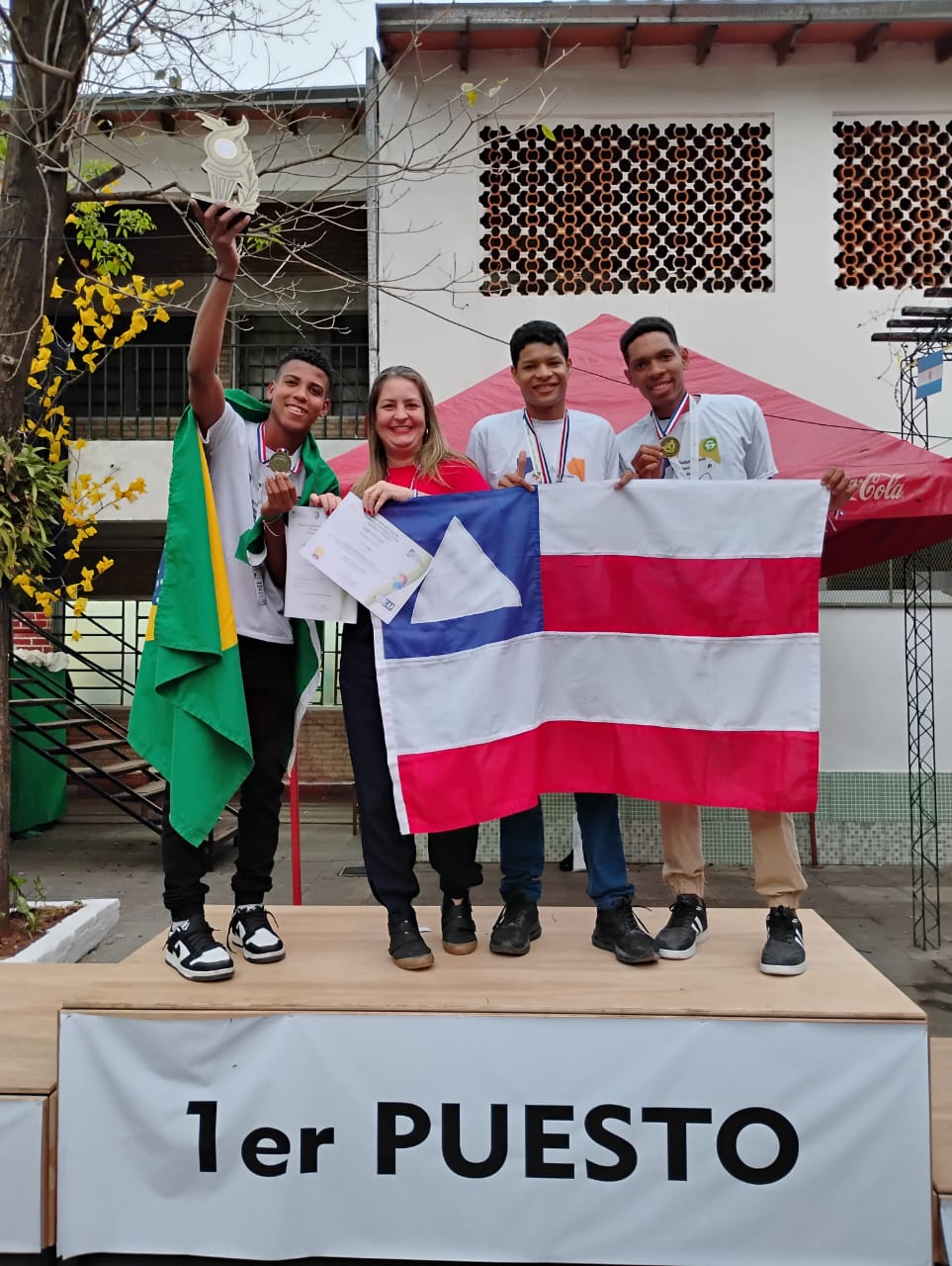 Os estudantes Jhonatas Silva, Everton Ribeiro e Ruben Pablo Barros, do Centro Juvenil de Ciência e Cultura (CJCC), unidade da rede estadual de ensino, sediada no Colégio Estadual Central da Bahia, no bairro de Nazaré, em Salvador, conquistaram o primeiro lugar com o projeto “Pé na Mata”, na categoria Criação de Jogos do Primer Sudamericano de Ciencias Y Tecnologia Escolar, evento promovido pelo Centro Educativo La Esperanza, em Assunção, no Paraguai. Trata-se de um jogo de tabuleiro que os alunos criaram visando a conscientização e o aprendizado sobre a Mata Atlântica, trazendo informações sobre animais em processo de extinção. No total, 17 estudantes baianos de Salvador, Boninal e Campo Formoso participaram do encontro internacional.