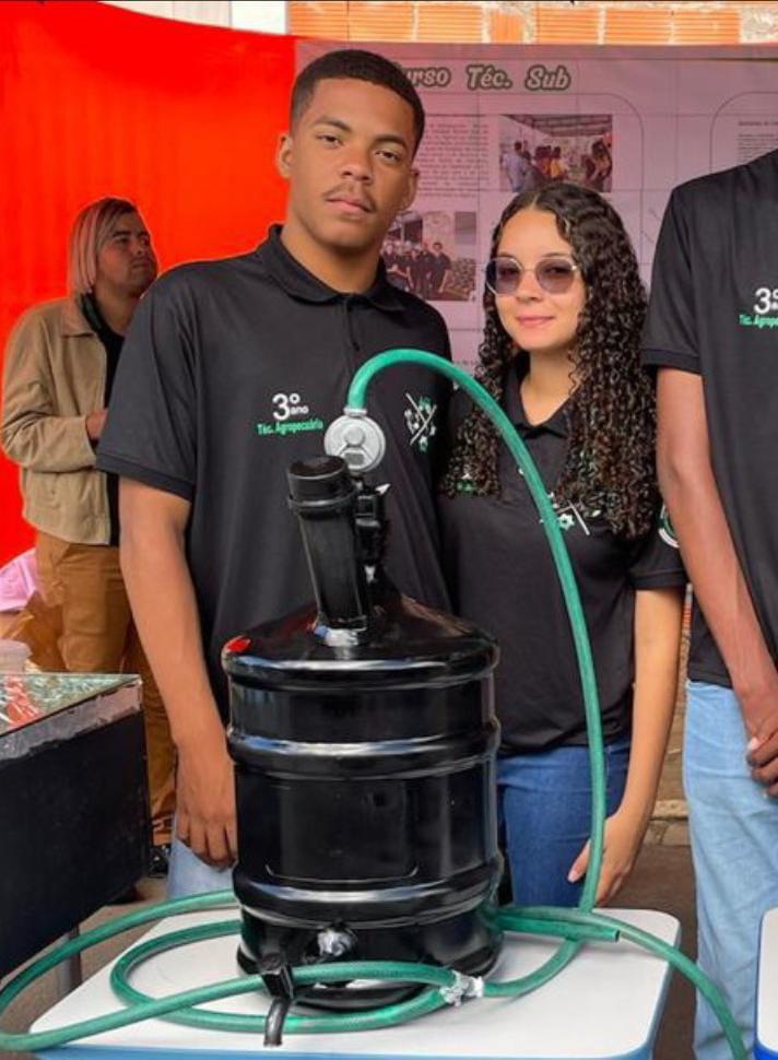 Visando minimizar o uso do gás de cozinha convencional e a crescente produção de resíduos orgânicos, os estudantes Christian Santana Santos, 17 anos, e Silvia Vieira da Silva, 18 anos, alunos do 3° técnico em Agropecuária do Colégio Estadual Manoel José de Andrade, no município de Planaltino, desenvolveram o projeto “Biodigestor sustentável”. O equipamento, criado com a ajuda do professor-orientador Nailson Feitosa Nascimento, transforma resíduos sólidos, como restos de alimento e esterco animal, em biogás, oferecendo uma alternativa sustentável, além de gerar biofertilizante que pode ser utilizado na agricultura local.