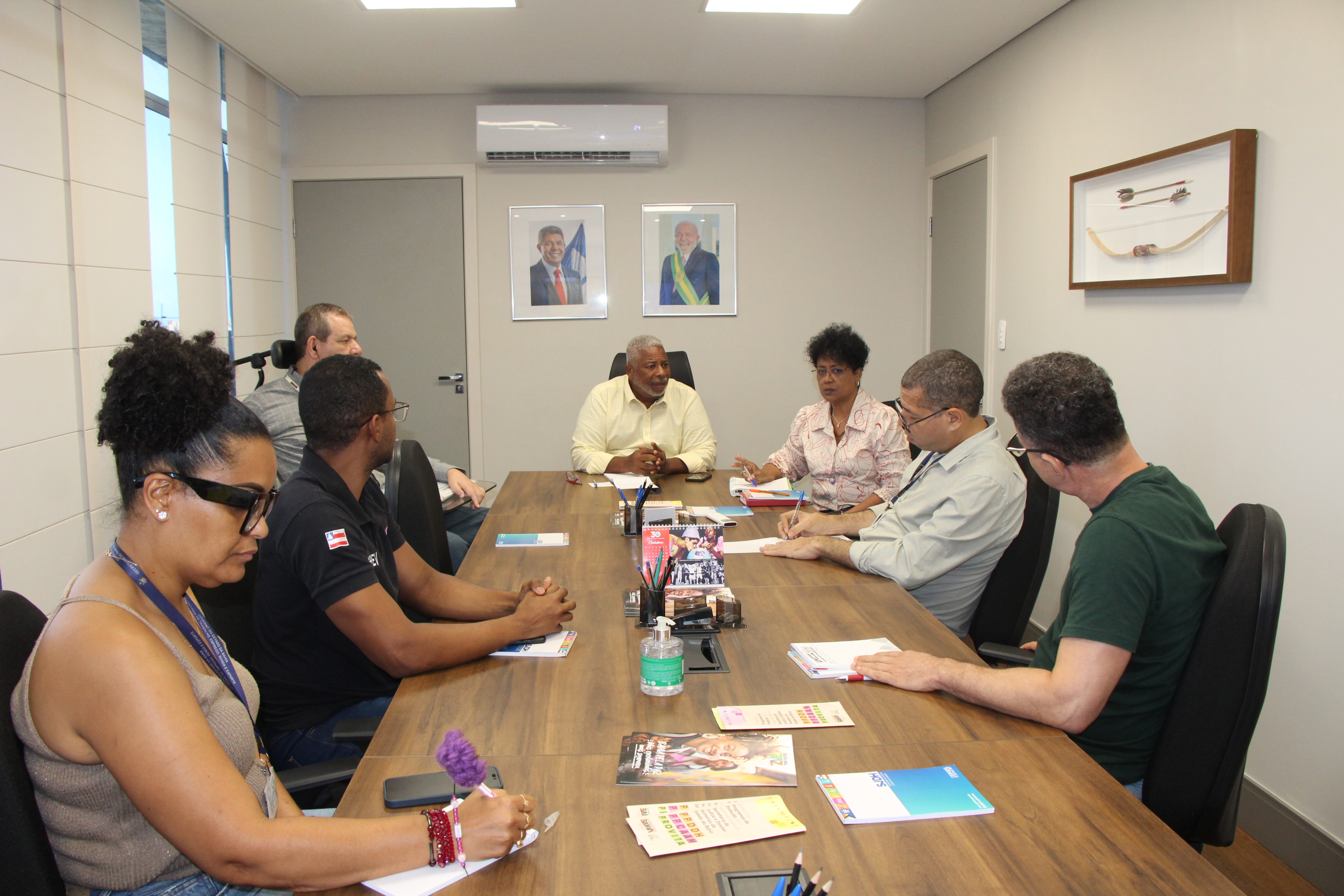 A reunião foi conduzida pelo secretário interino da SJDH, Raimundo Nascimento, e contou com a participação de representantes das Secretarias Estaduais de Saúde (Sesab), Educação (SEC), Trabalho, Emprego, Renda e Esporte (Setre), Segurança Pública (SPP) e Comunicação (Secom). Durante o encontro, foram apresentadas sugestões de ações que visam ampliar a efetividade das políticas públicas para o segmento.