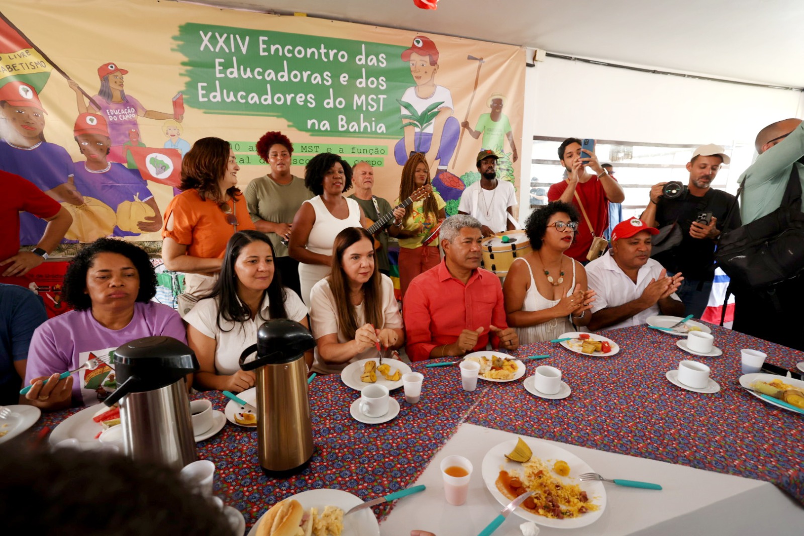 Modelos pedagógicos que valorizam a natureza e a agricultura limpa foram apresentados por 14 escolas estaduais do campo presentes nos três dias do 24º Encontro Estadual de Educadoras e Educadores do Movimento dos Trabalhadores Rurais Sem Terra (MST) na Bahia. O encerramento do evento, apoiado pela Secretaria da Educação (SEC), neste sábado (26), no Centro de Treinamento da Secretaria de Desenvolvimento Rural (SDR), no bairro de Itapuã, em Salvador, contou com um café da manhã com a presença do governador Jerônimo Rodrigues, da secretária da Educação, Rowenna Brito, e de outras autoridades.