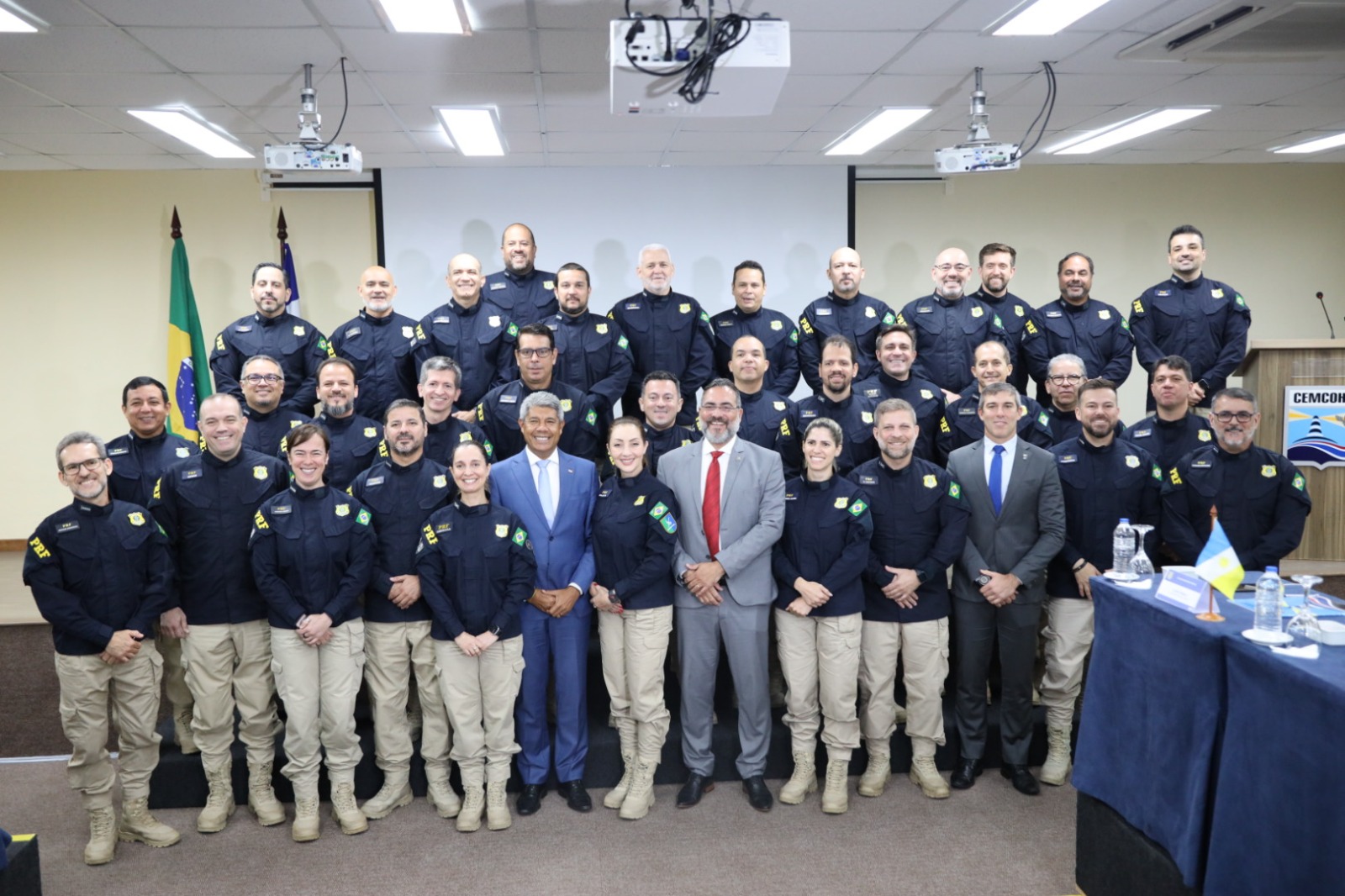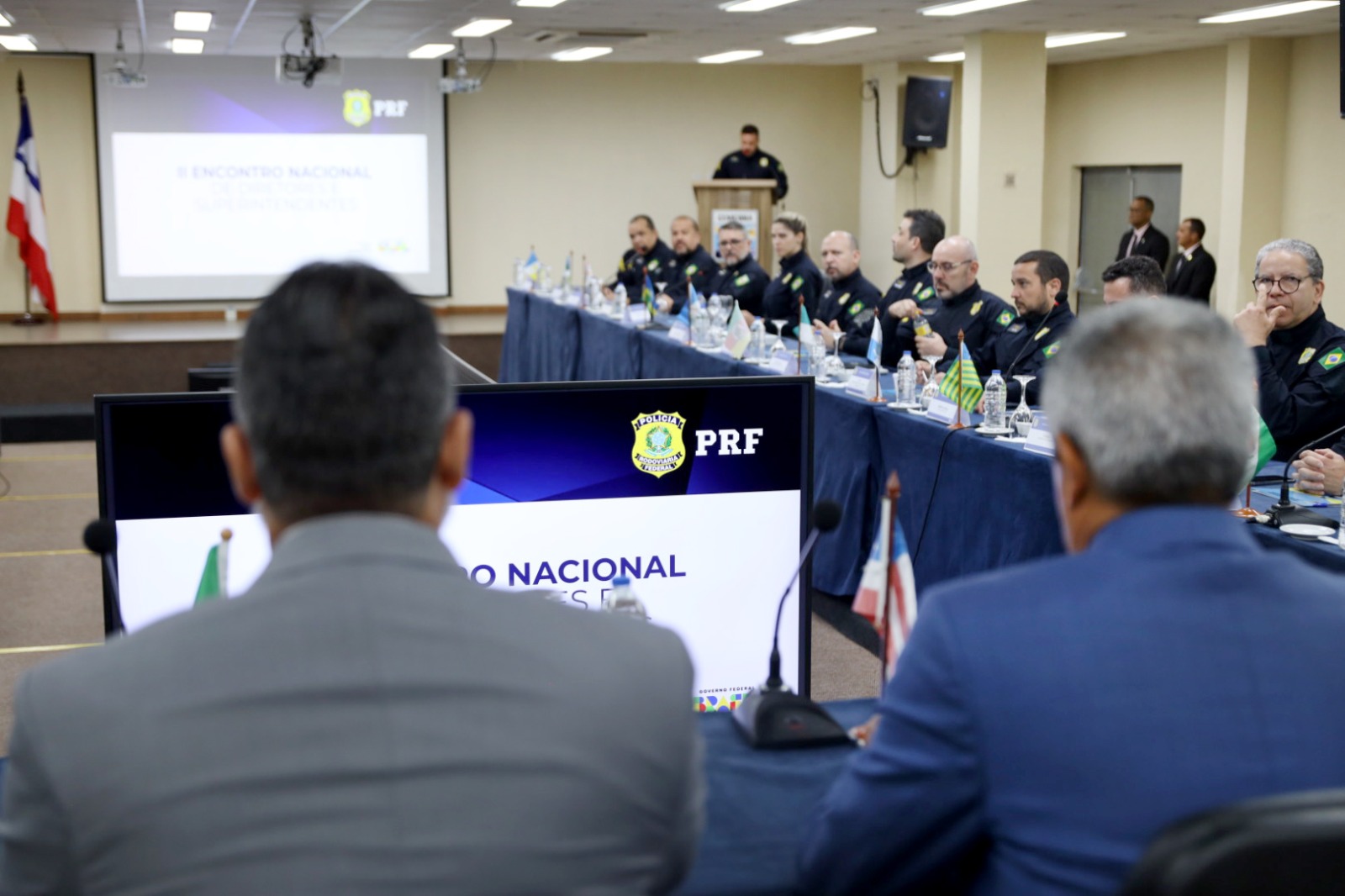 O segundo Encontro da Polícia Rodoviária Federal (PRF) para alinhamento das ações da força de segurança no âmbito nacional começou, em Salvador, e reuniu, na abertura do primeiro de quatro dias de debates, 40 superintendentes, diretores e corregedores-gerais das unidades regionais da corporação. O governador Jerônimo Rodrigues e o secretário da Segurança Pública, Marcelo Werner, recepcionaram os policiais e participaram da cerimônia, que aconteceu nesta terça-feira (15), no Centro Militar de Convenções e Hospedagens da Aeronáutica (CEMCOHA), em Ondina.