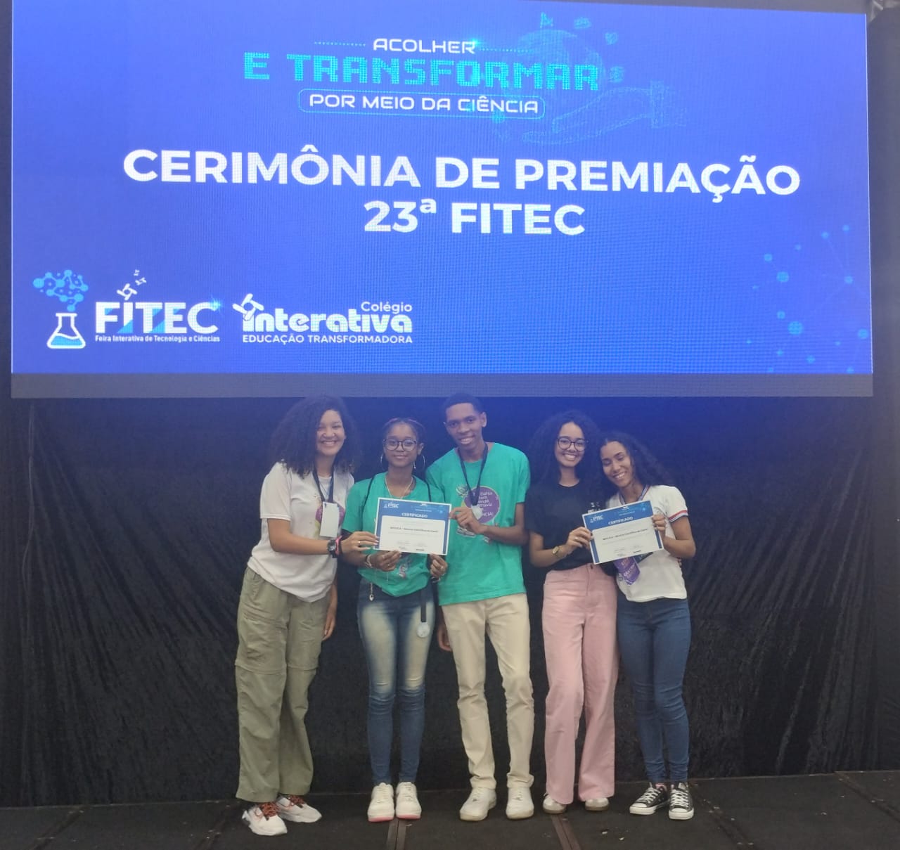 Os estudantes do Colégio Estadual Dr. Roberto Santos também foram contemplados com Medalha de Prata no Fitec 2024, pelo projeto "Impactos da pandemia de Covid-19 na educação e bem-estar dos alunos do CERS: desafios e resiliência". Os autores, Ana Luísa Carvalho Santos, Eberte Vitor dos Santos Cunha e Samara Ester das Neves Barbosa, foram orientados pela professora Rebeca Rocha Silva.