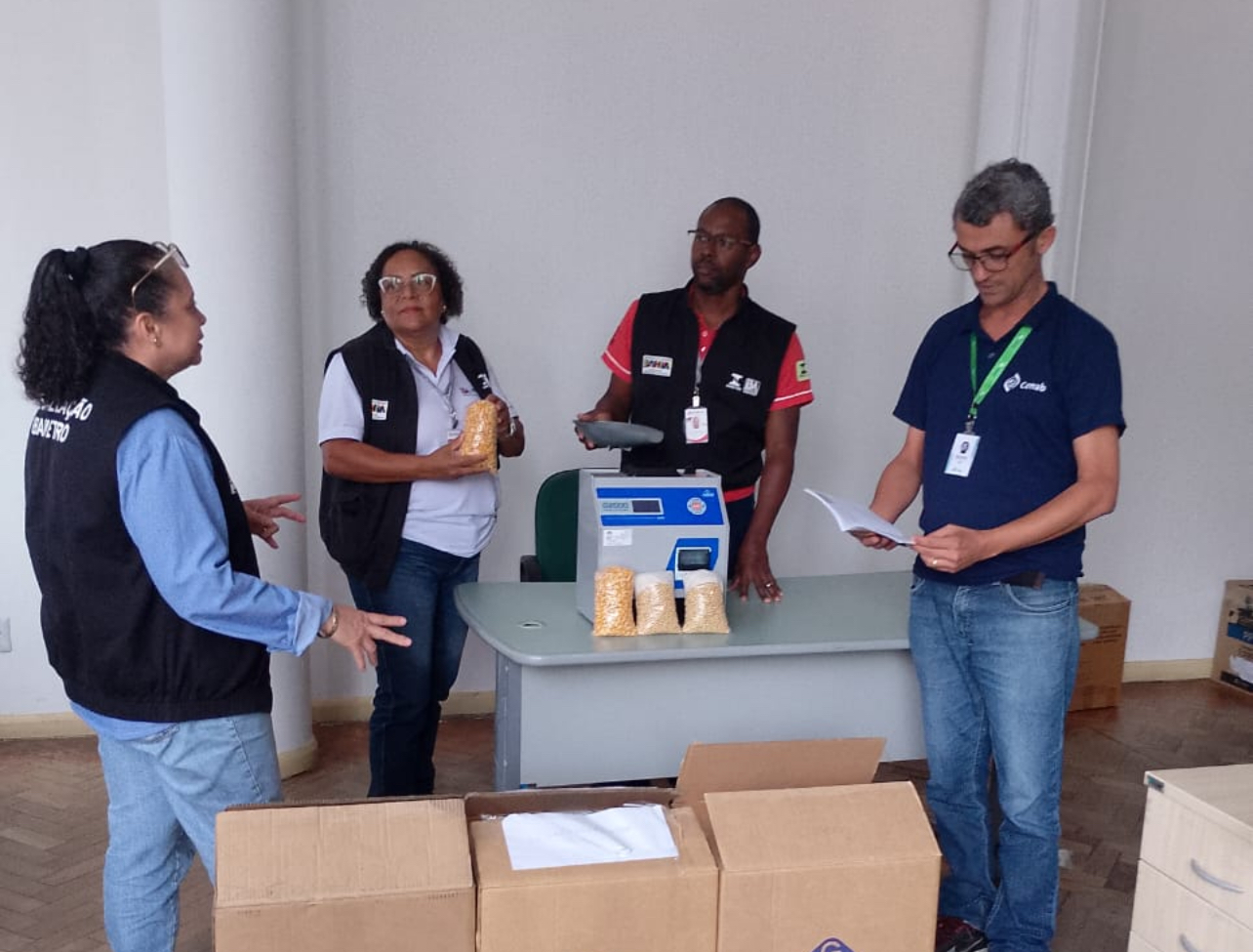 Técnicos do Ibametro estiveram na Companhia Nacional de Abastecimento (Conab) para verificar novos medidores de umidade de grãos.