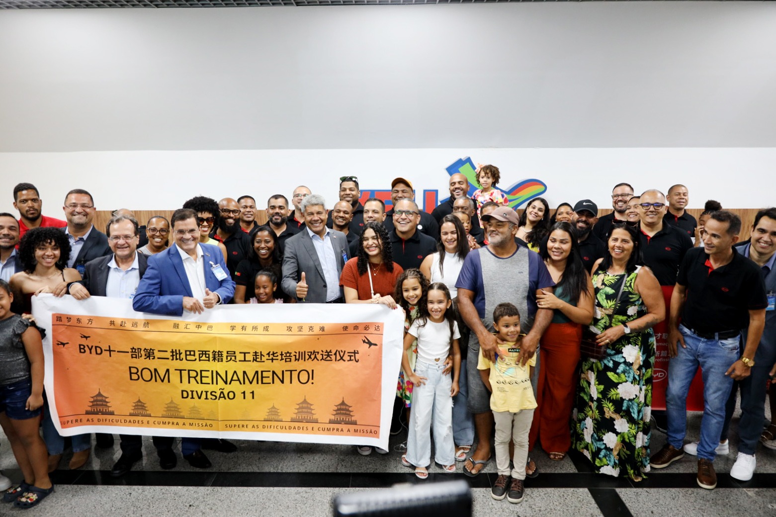 “Estou me despedindo dessa equipe de brasileiros, baianos, que vai para China se capacitar e voltar para cuidar dos trabalhos da BYD. Serão dois meses, uma equipe de 74 pessoas que vão se preparar, voltar e, nesse intervalo, uma equipe de alto padrão da China vai estar aqui fazendo novos anúncios”, declarou o governador junto aos viajantes.