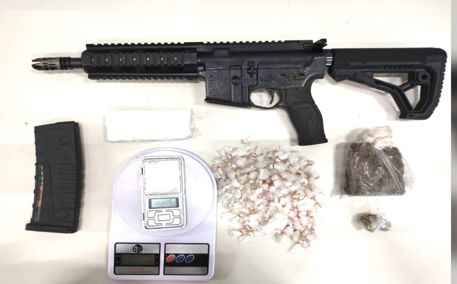 No bairro de Itapuã, em uma casa utilizada como laboratório de drogas e distribuição de armamentos, equipes localizaram dois fuzis calibre 5,56. No imóvel foram também encontrados 150 kg de entorpecentes, balanças, entre outros materiais.