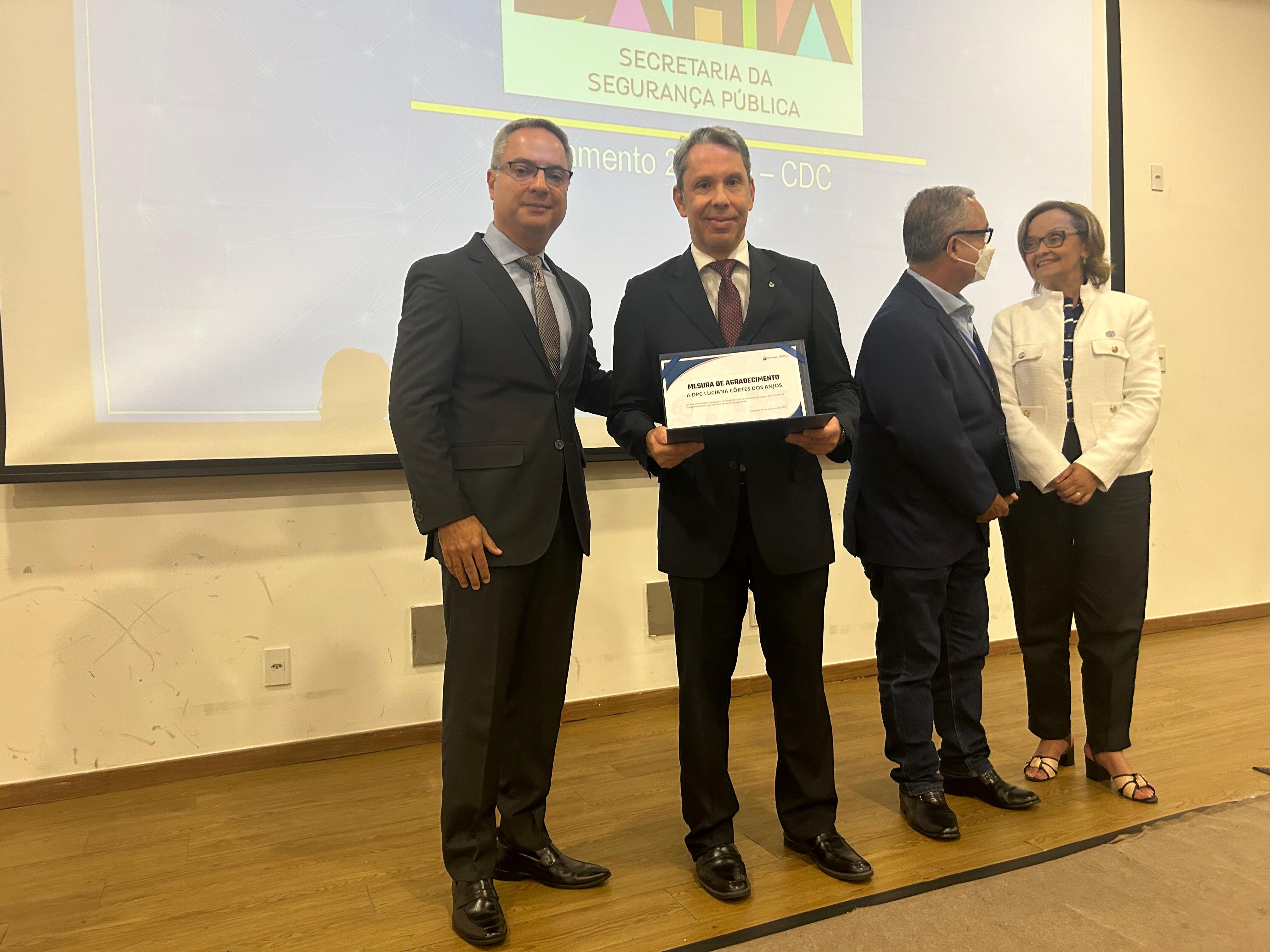 Durante a solenidade, os superintendentes de Gestão Tecnológica e Organizacional (SGTO) e de Telecomunicações (Stelecom), capitão de mar e guerra Frederico Albuquerque, e major PM Moisés Travessa, respectivamente, além da delegada Luciana Cortês, o major PM Adriano Paz do Rosário, comandante da 50ª CIPM (Sete de Abril), o perito criminal Arnaldo Santos Gomes, além do major Ubiraci Alves e do capitão PM Alan Freitas foram homenageados e receberam certificados pela participação na primeira fase, realizada em dezembro de 2023.
