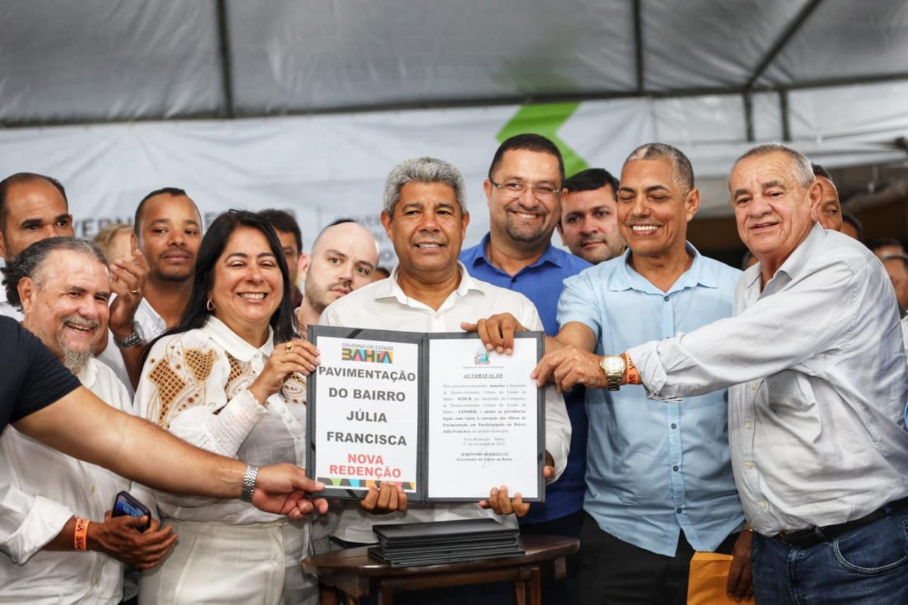 O governador também autorizou duas importantes obras para a região. A primeira é a pavimentação do acesso ao Colégio Estadual de Tempo Integral Edilson Joaquim dos Santos, com investimento de mais de R$ 1 milhão. A obra começará ainda em dezembro de 2024 e deve ser concluída até abril do próximo ano. Além disso, Jerônimo autorizou o início de um projeto para a construção de uma ponte sobre o Rio Paraguaçu, na Rodovia BA-634, em Nova Redenção. O valor estimado para essa obra é de mais de R$ 17 milhões.