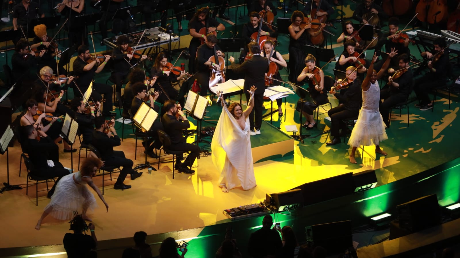 A noite começou com a Orquestra Sinfônica da Bahia e seguiu com apresentações vibrantes e diversificadas dos artistas convidados. Daniela Mercury, Gaby Amarantos, Kleiton & Kledir, Ellen Oléria, Mart’nália e BaianaSystem levaram ao palco um espetáculo que encantou o público. O concerto foi encerrado com todos os artistas reunidos em uma música final, ressaltando a importância das políticas culturais para fortalecer a identidade nacional e promover a cultura brasileira no cenário global.