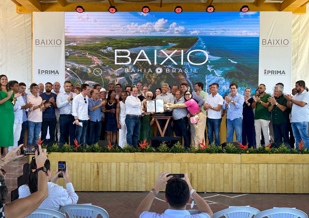 A praia de Baixio, localizada no litoral norte da Bahia, será palco do maior investimento já realizado pelo setor turístico privado no Brasil. Com mais de R$ 5 bilhões destinados ao projeto, o complexo de luxo tem o potencial de posicionar a região como um dos principais destinos turísticos do país. Neste sábado (30), o governador Jerônimo Rodrigues, acompanhado da primeira-dama Tatiana Velloso, participou do lançamento da pedra fundamental do empreendimento, idealizado pelo Grupo Prima, e apresentou uma série de iniciativas do Governo do Estado voltadas a impulsionar as obras e estimular o crescimento do turismo na área.